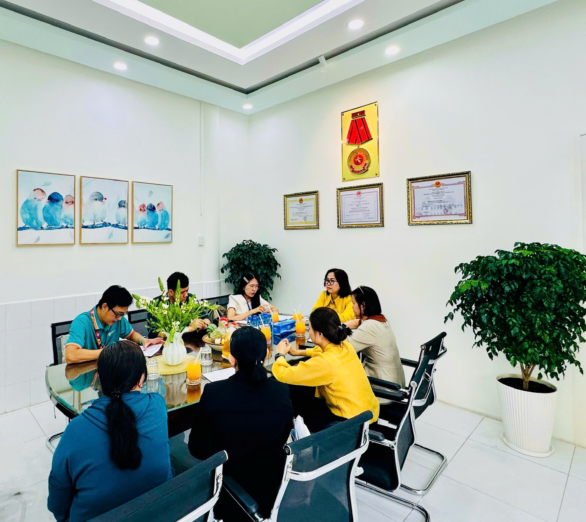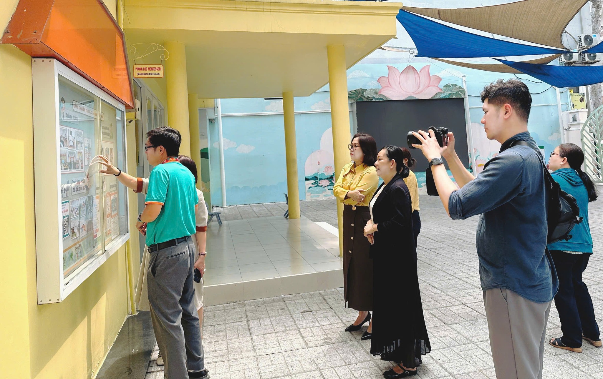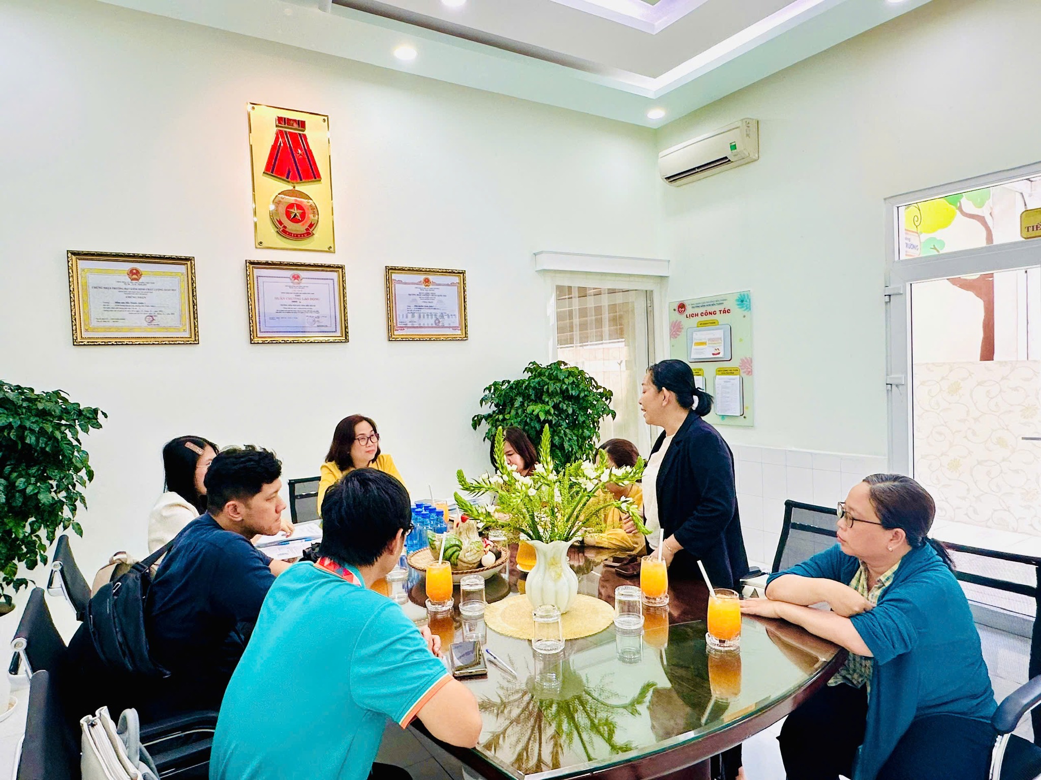 Tại buổi làm việc, Ban Giám hiệu nhà trường đã báo cáo việc triển khai các hoạt động truyền thông đến đội ngũ giáo viên và phụ huynh, đồng thời trình bày đa dạng các hình thức tuyên truyền như: thông tin qua bảng tin, poster, lồng ghép trong hoạt động giáo dục trẻ và truyền thông qua các nhóm phụ huynh.
