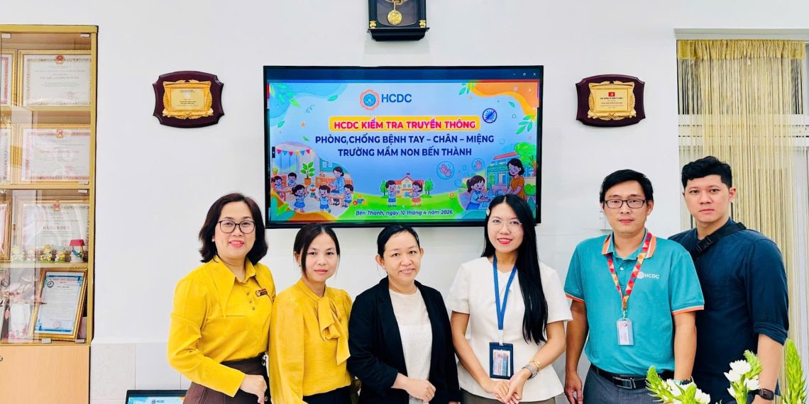 Chiều ngày 10/4/2026, Trường Mầm non Bến Thành đã đón đoàn công tác của HCDC phối hợp cùng Trạm Y tế phường Bến Thành đến kiểm tra, nắm tình hình triển khai công tác truyền thông phòng, chống bệnh tay – chân – miệng tại nhà trường.
