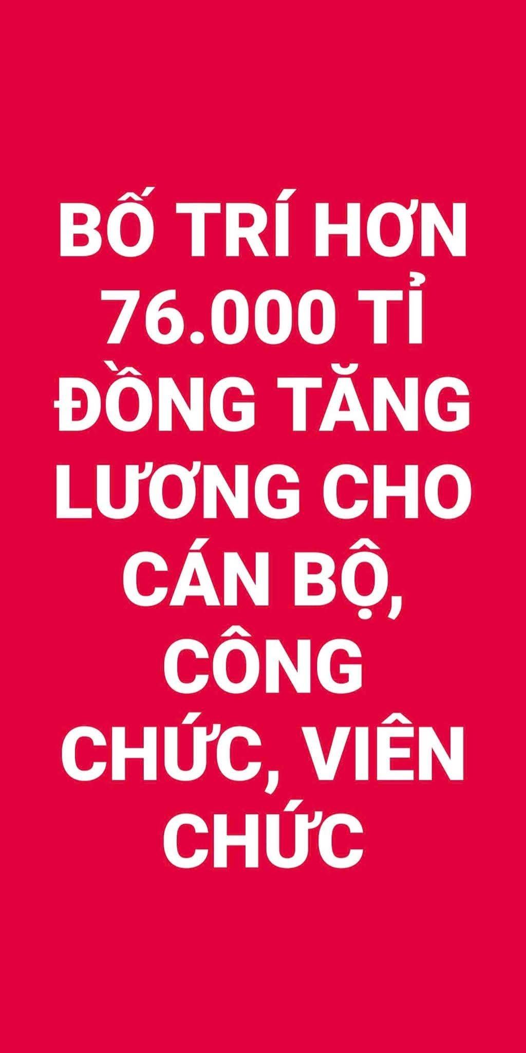 Ủy ban Thường vụ Quốc hội quyết nghị bố trí nguồn 76.769 tỉ đồng để thực hiện cải cách tiền lương với cán bộ, công chức, viên chức, lực lượng vũ trang và người lao động trong doanh nghiệp.