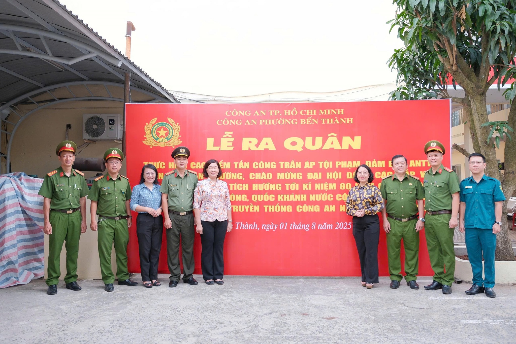 Sáng ngày 01/8/2025, Công an phường Bến Thành tổ chức Lễ ra quân thực hiện cao điểm tấn công, trấn áp tội phạm, đảm bảo an ninh, trật tự trên địa bàn phường, chào mừng Đại hội Đảng bộ phường và thi đua lập thành tích hướng tới kỷ niệm 80 năm Cách mạng tháng Tám (19/8/1945 – 19/8/2025), Quốc khánh nước Cộng hòa xã hội chủ nghĩa Việt Nam (02/9/1945 – 02/9/2025) và Ngày truyền thống Công an nhân dân Việt Nam (19/8/1945 – 19/8/2025).