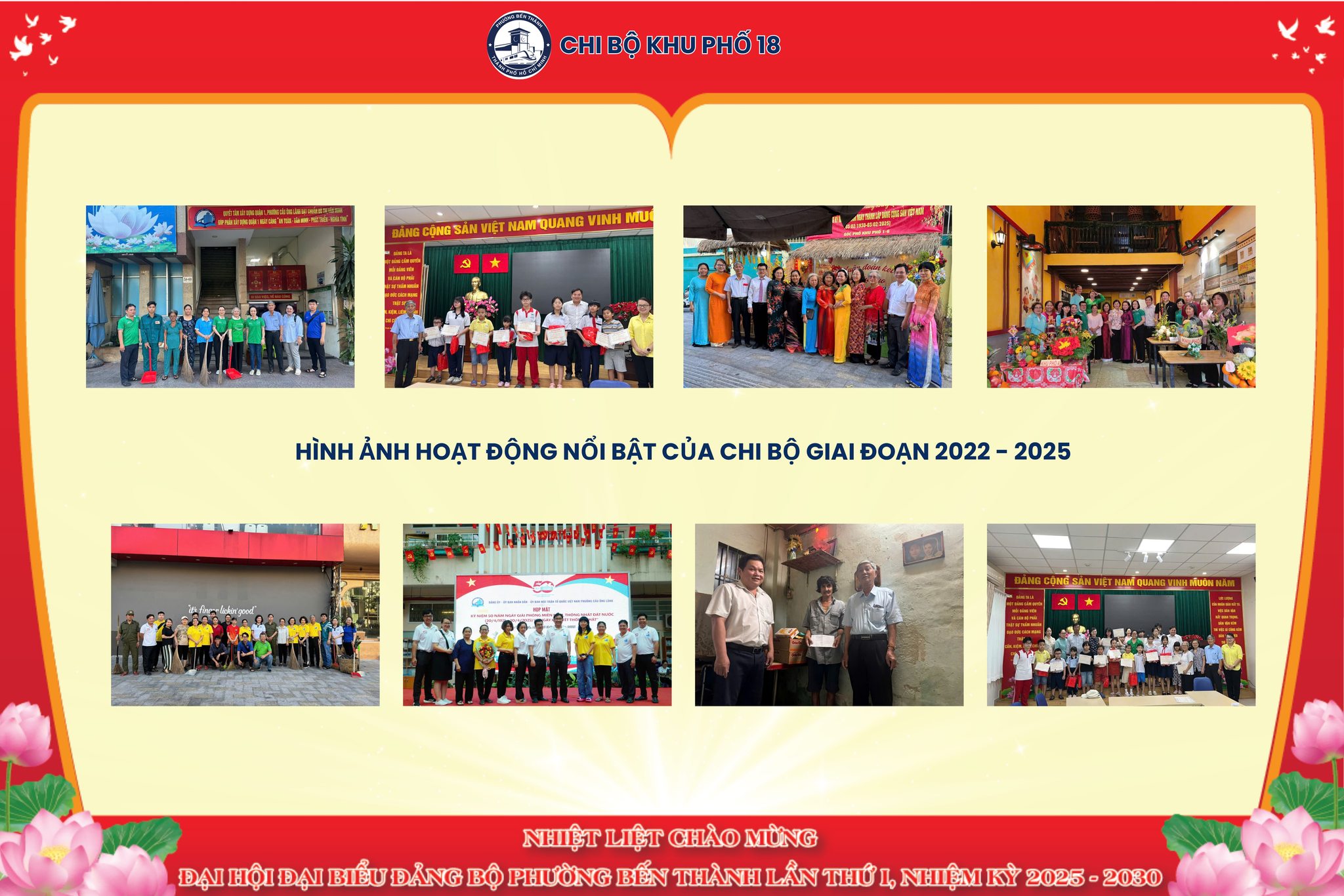 Hòa trong không khí thi đua sôi nổi chào mừng Đại hội đại biểu Đảng bộ phường Bến Thành lần thứ I, nhiệm kỳ 2025–2030. Chi bộ khu phố đã tổ chức nhiều hoạt động thiết thực, ý nghĩa nhằm thể hiện tinh thần đoàn kết, quyết tâm xây dựng địa phương ngày càng phát triển.