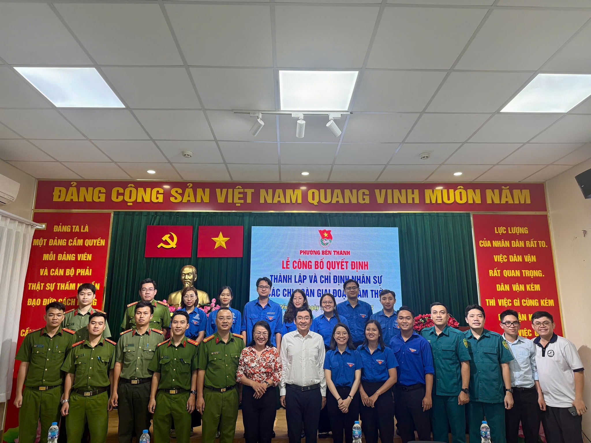 Chiều ngày 14/8/2025, Đoàn phường Bến Thành trang trọng tổ chức Lễ công bố các quyết định thành lập và chỉ định Ban Chấp hành, Bí thư, Phó Bí thư các chi đoàn trực thuộc phường Bến Thành giai đoạn lâm thời. Đến tham dự buổi Lễ có các đồng chí lãnh đạo: Trần Đỗ Nam Long UV.BTV Đảng uỷ, Trưởng ban Xây dựng Đảng phường; Phạm Thị Ngọc Minh – UV.BTV Đảng uỷ, Chủ tịch Ủy ban Mặt trận Tổ quốc Việt Nam phường; Vũ Thị Tâm – Đảng ủy viên, Phó Chủ tịch Ủy ban Mặt trận Tổ quốc Việt Nam, Bí thư Đoàn phường Bến Thành.