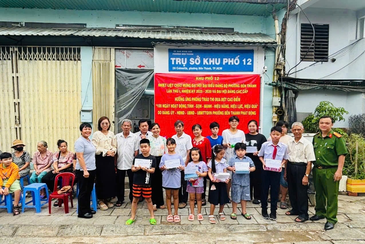 sáng ngày 15/8/2025, Cấp ủy – Khu phố – Ban Công tác Mặt trận và các chi hội đoàn thể Khu phố 12 đã trao tặng 07 thẻ Bảo hiểm y tế cho hộ cận nghèo; 11 suất quà cho các em học sinh có thành tích tốt trong học tập. Tổng giá trị quà tặng 7.200.000 đồng.