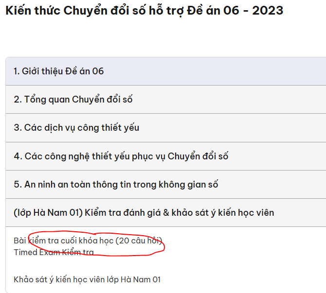 – Lộ trình học tập của môn học được chia thành nhiều bài học như hình trên. Mỗi bài học sẽ được hiển thị theo dạng danh sách có tên cụ thể. Người học bấm chuột vào tên bài học để mở các mục học bên trong. Trong mỗi bài học, có thể có nhiều mục nhỏ như: tài liệu đọc trước, video bài giảng, hoặc bài kiểm tra. Bạn cần bấm chuột vào từng mục để truy cập nội dung tương ứng.