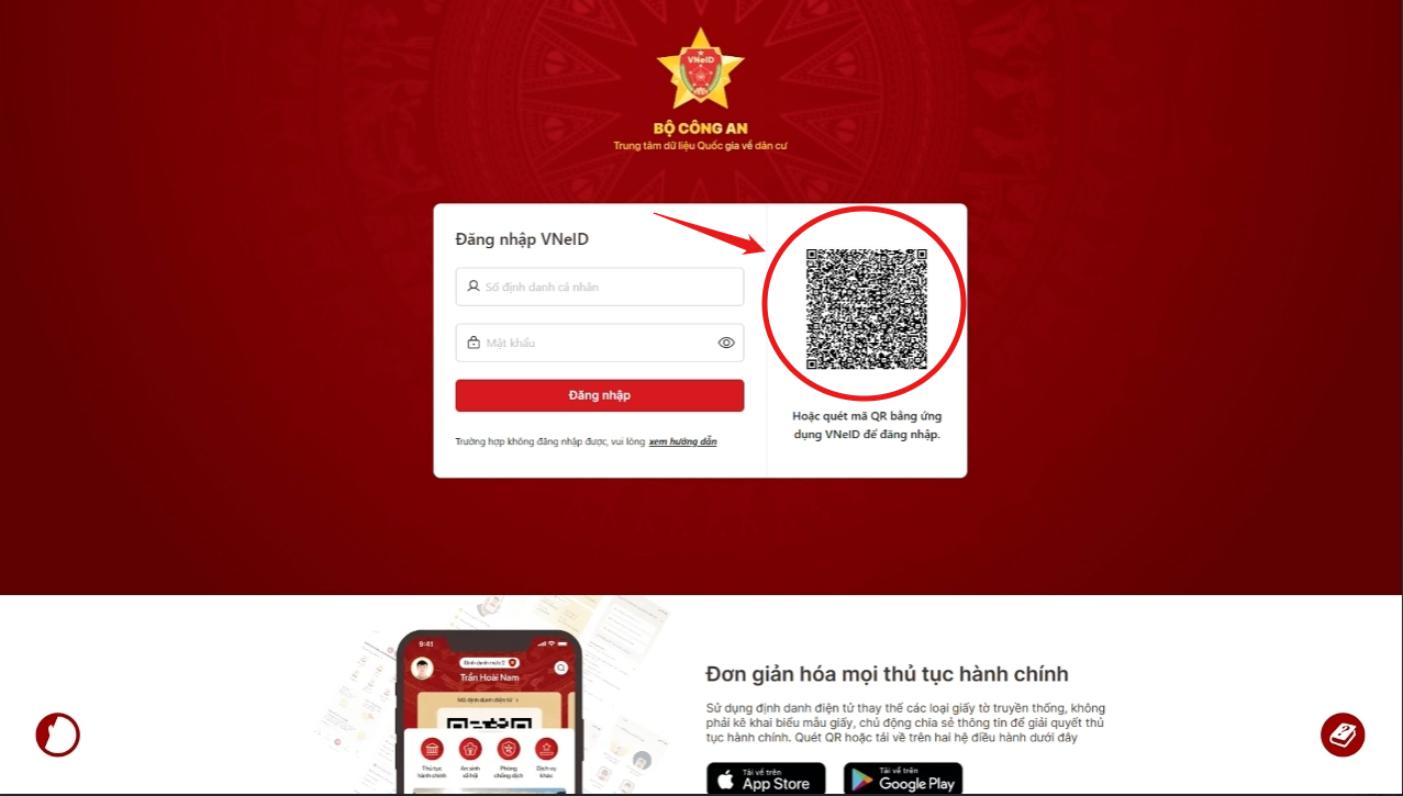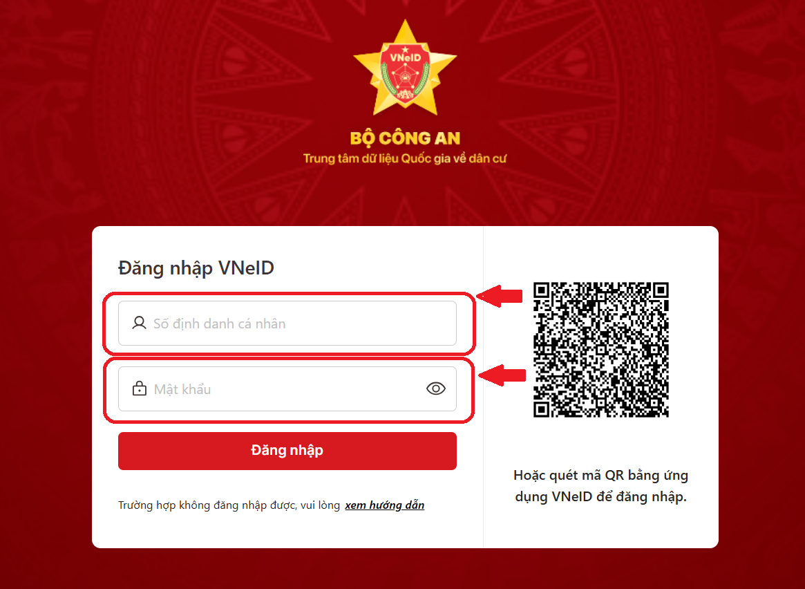 – Cách 1: Đăng nhập trực tiếp qua Số định danh cá nhân và mật khẩu