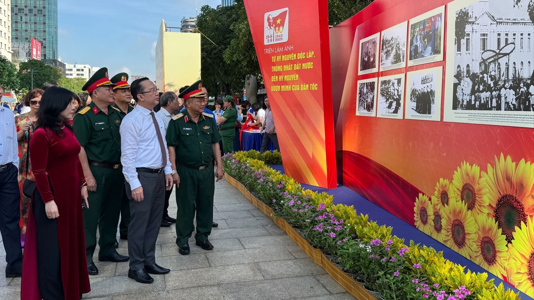 Tại đường đi bộ Nguyễn Huệ, 100 bức ảnh với chủ đề “Từ kỷ nguyên độc lập, thống nhất đất nước đến kỷ nguyên vươn mình của dân tộc” được trưng bày, tái hiện khí thế Tổng khởi nghĩa Tháng Tám năm 1945, sự ra đời của nước Việt Nam Dân chủ Cộng hòa, cùng hành trình đấu tranh giành độc lập, thống nhất đất nước. Nổi bật là hình ảnh hơn một triệu người dân Sài Gòn – Chợ Lớn và các tỉnh Nam bộ xuống đường giành chính quyền ngày 25-8-1945, góp phần làm nên thắng lợi của Cách mạng Tháng Tám.