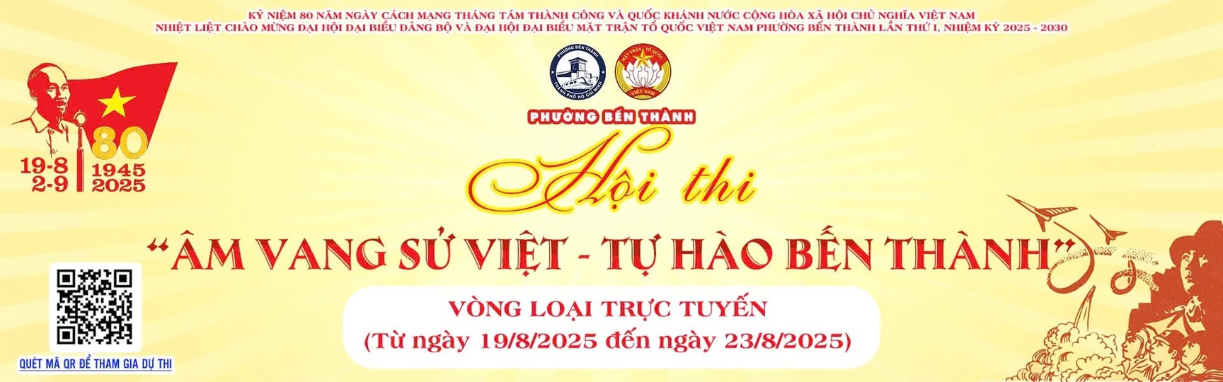 Hướng đến kỷ niệm 80 năm Cách mạng tháng Tám thành công (19/8/1945 – 19/8/2025) và Quốc khánh nước Cộng hòa Xã hội Chủ nghĩa Việt Nam (2/9/1945 – 2/9/2025), phường Bến Thành tổ chức Hội thi trực tuyến “Âm vang Sử Việt – Tự hào Bến Thành”.