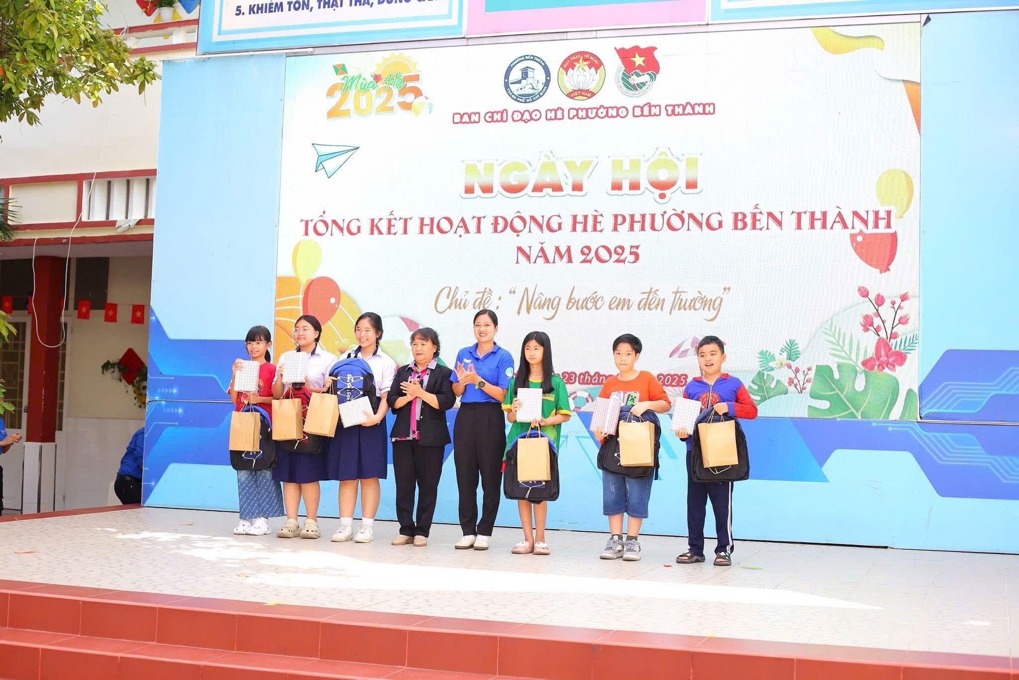 Với chủ đề “Tự hào thiếu nhi Thành phố Bác Hồ”, hoạt động hè năm 2025 đã diễn ra sôi nổi, rộng khắp từ phường đến khu phố; thông qua các hoạt động đã tạo điều kiện cho các em thanh thiếu niên, nhi đồng có được nhiều sân chơi vui tươi, lành mạnh và bổ ích. Nhằm đánh giá kết quả thực hiện cũng như tuyên dương những tập thể và cá nhân tích cực, sáng ngày 23/8, Đoàn phường Bến Thành tổ chức Ngày hội tổng kết hè với chủ đề “Nâng bước em đến trường”.