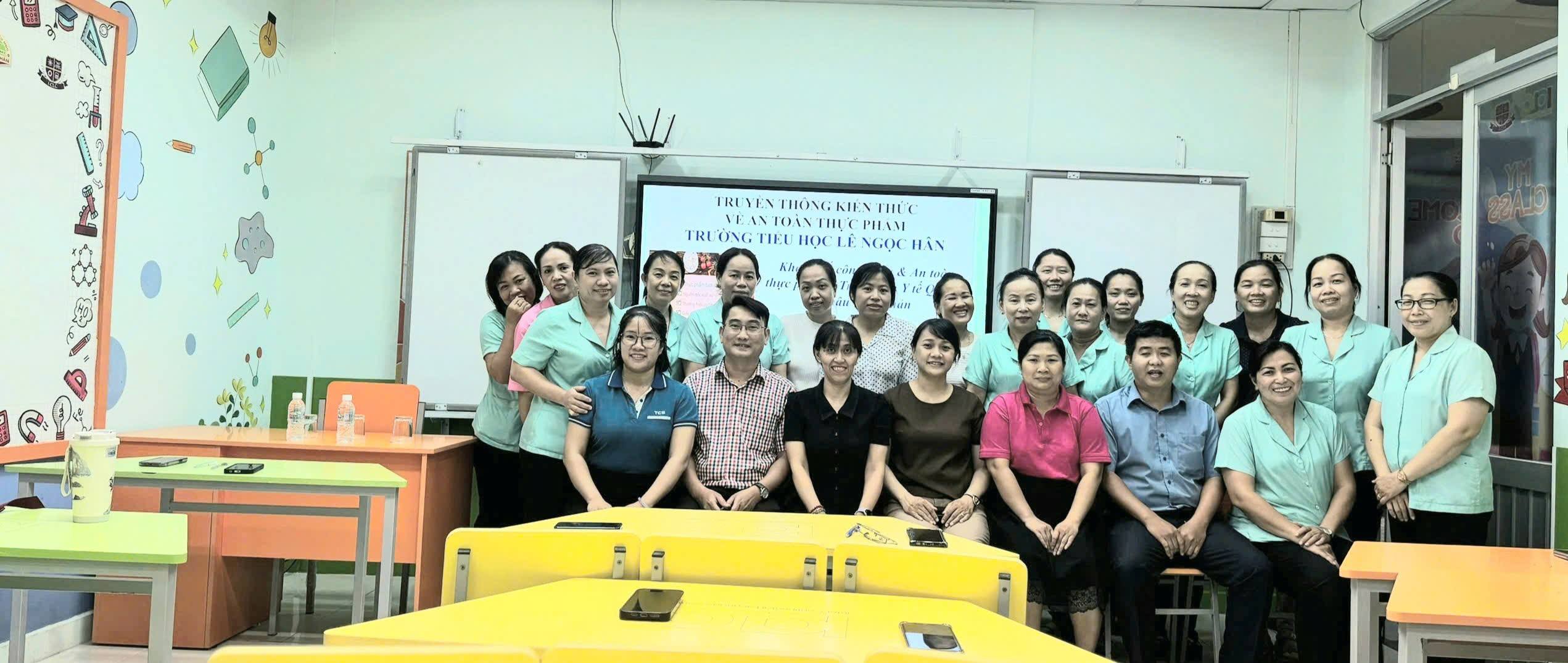 Chiều ngày 27/8/2025, tại Trường Tiểu học Lê Ngọc Hân, tập thể cán bộ, nhân viên đã được nghe chuyên đề “Truyền thông kiến thức về An toàn thực phẩm” do Khoa Y tế công cộng & An toàn thực phẩm – Trung tâm Y tế Quận 1 thực hiện.