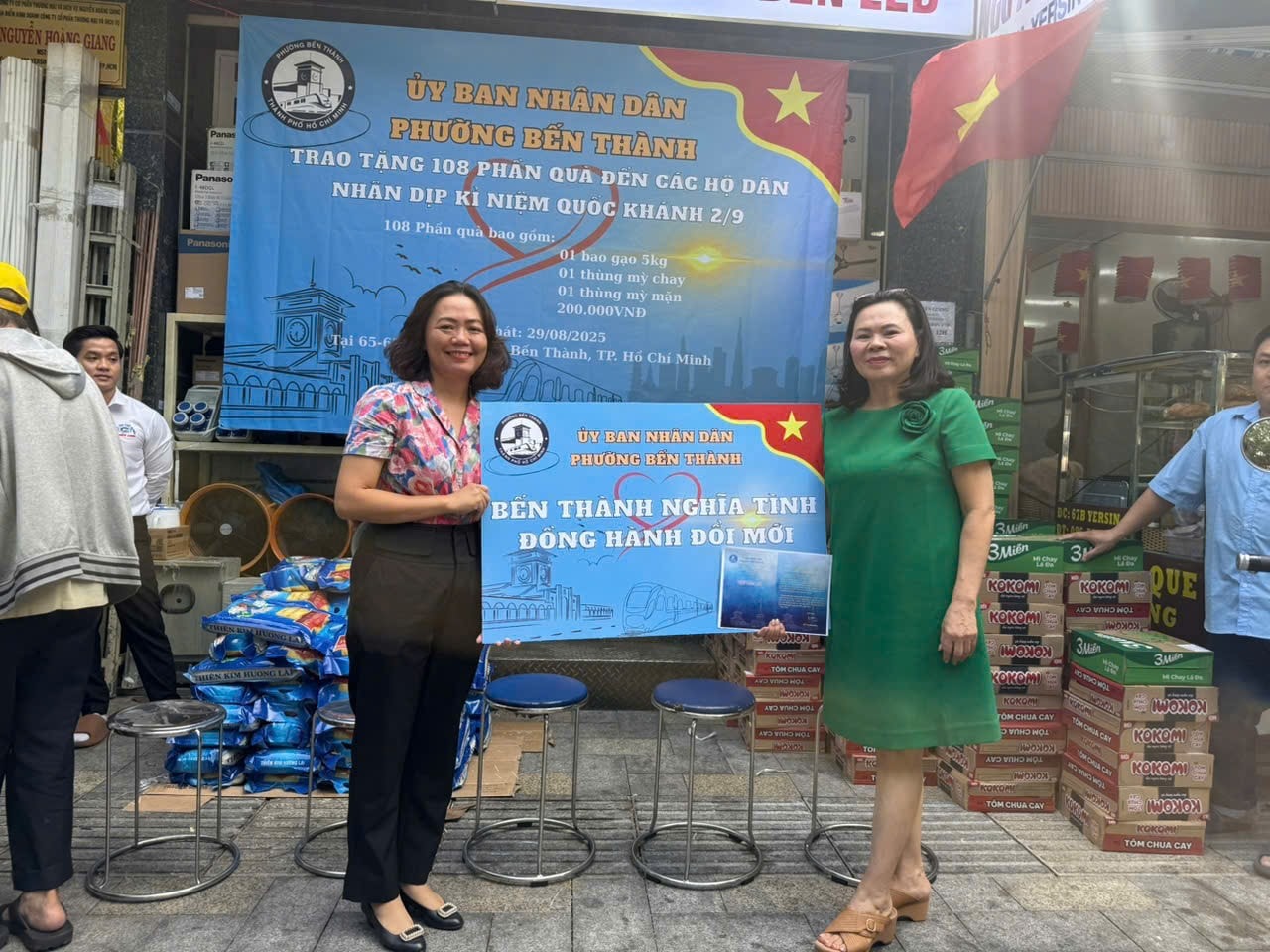 Chiều ngày 29/8/2025, hòa trong không khí sôi nổi chào mừng kỷ niệm 80 năm Cách mạng tháng Tám (19/8/1945 – 19/8/2025); Quốc khánh nước Cộng hòa xã hội chủ nghĩa việt nam (02/9/1945 – 02/9/2025), Ủy ban nhân dân dân phường Bến Thành phối hợp đơn vị tài trợ Công ty Cổ phần Thương mại và Dịch vụ Nguyễn Hoàng Giang đã tổ chức trao tặng hơn 100 phần quà với tổng trị giá 64.000.000 đồng đến các hộ có hoàn cảnh khó khăn trên địa bàn.