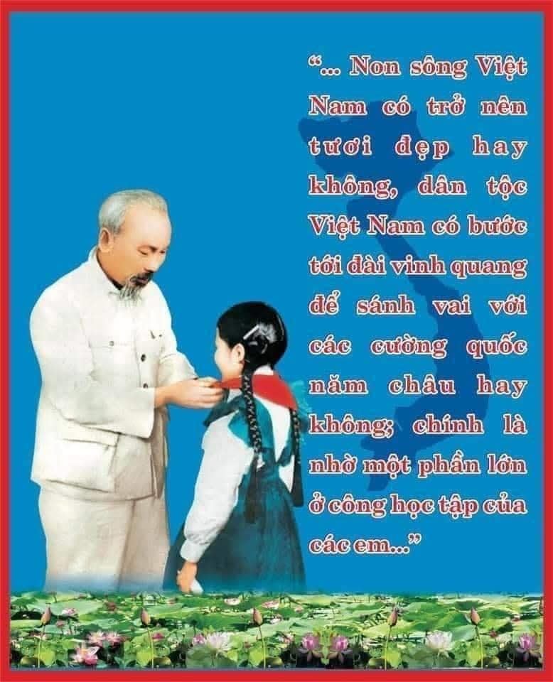 Trong công cuộc kiến thiết đó, nước nhà trông mong chờ đợi ở các em rất nhiều. Non sông Việt Nam có trở nên tươi đẹp hay không, dân tộc Việt Nam có bước tới đài vinh quang để sánh vai với các cường quốc năm châu được hay không, chính là nhờ một phần lớn ở công học tập của các em.