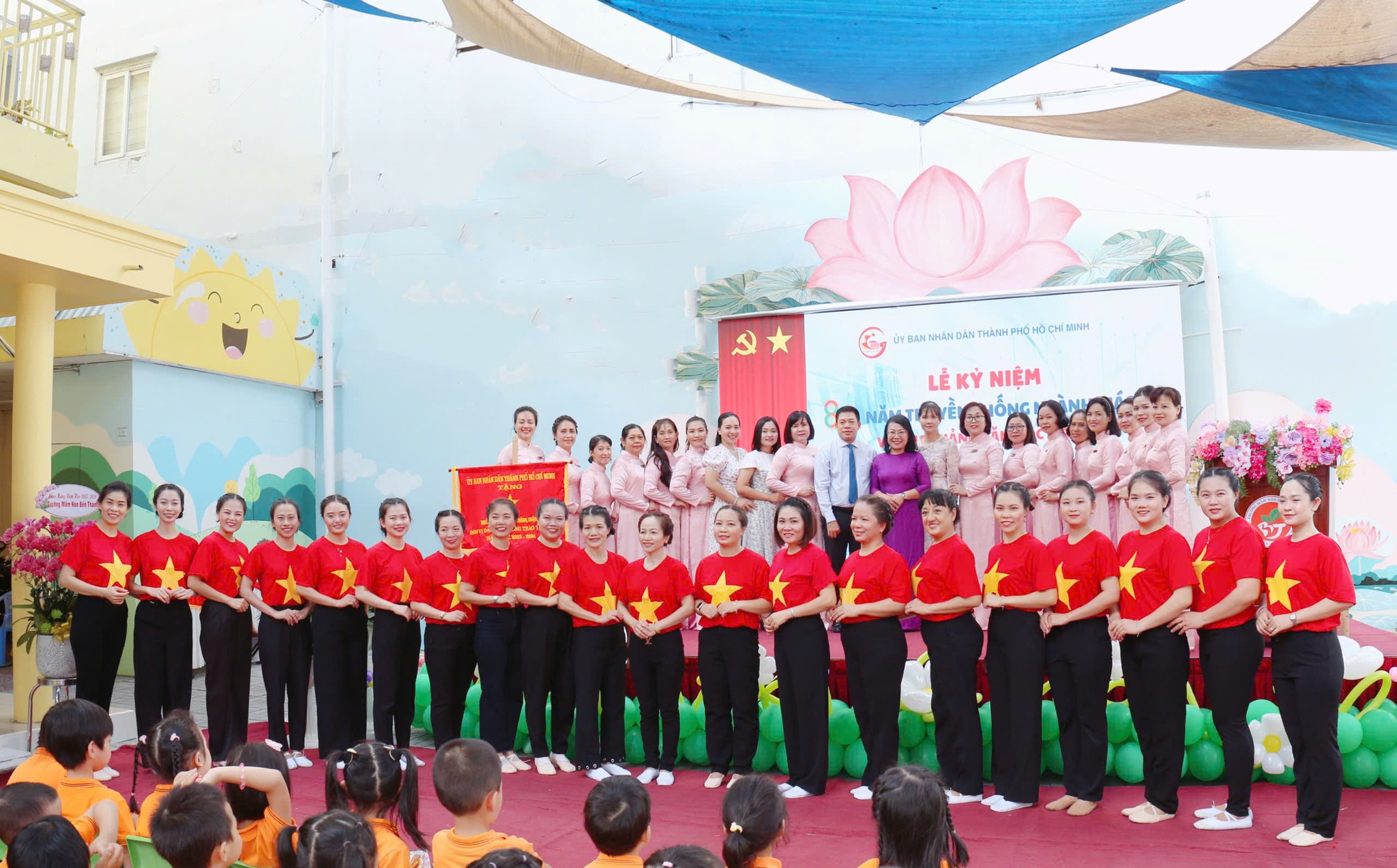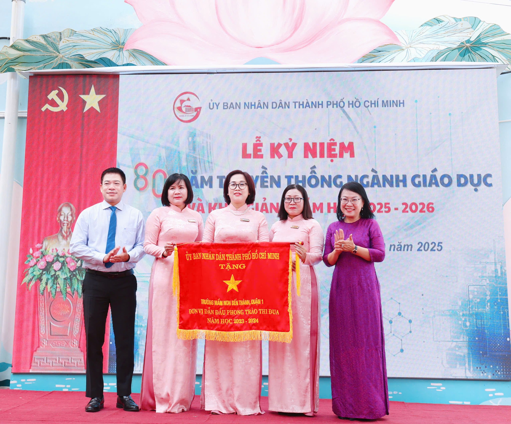 Đặc biệt, Trường Mầm non Bến Thành vinh dự được Ủy ban Nhân dân TP.HCM trao tặng Cờ thi đua “Đơn vị dẫn đầu phong trào thi đua” năm học 2023 – 2024 theo Quyết định số 2332/QĐ-UBND ngày 06 tháng 6 năm 2025 của UBND Thành phố Hồ Chí Minh. Đây là phần thưởng cao quý, là sự ghi nhận xứng đáng cho những nỗ lực, tâm huyết và cống hiến của tập thể nhà trường.