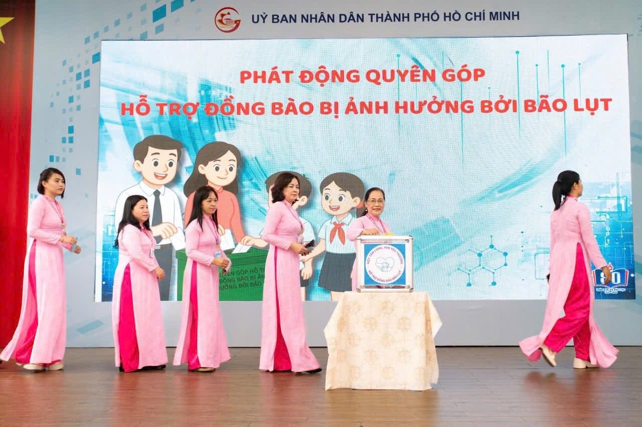 Mang ý nghĩa nhân văn sâu sắc, tinh thần nhân ái tiếp tục được lan tỏa với công trình “Kết nối yêu thương – cùng em đến trường” khi nhà trường trao những suất học bổng ý nghĩa cho học sinh có hoàn cảnh khó khăn giúp các em có đủ sách vở, đồng phục và BHYT trước thềm năm học mới. Đồng thời, nhà trường phát động phong trào quyên góp ủng hộ đồng bào miền Trung đang chịu ảnh hưởng nặng nề bởi cơn bão số 4 và số 5, thể hiện tấm lòng sẻ chia, tình đoàn kết của tập thể giáo viên, học sinh và phụ huynh.