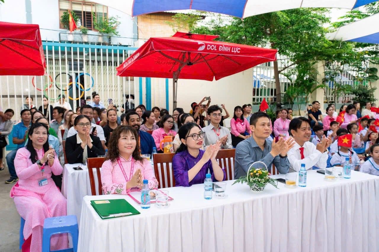 Ngay đầu chương trình là Nghi thức đón học sinh lớp 1 – giây phút các em nhỏ lần đầu tiên khoác lên mình màu áo đồng phục tiểu học, bước vào cánh cửa tri thức rộng mở. Tiếng trống, tiếng vỗ tay hòa cùng niềm vui và ánh mắt trìu mến của thầy cô, cha mẹ đã tạo nên khoảnh khắc xúc động, thắp sáng niềm tin cho những mầm xanh tương lai.