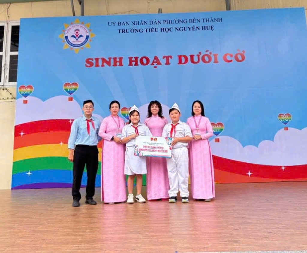 Sau nghi thức chào cờ trang nghiêm, thầy trò cùng nhau sinh hoạt về nề nếp khi đến trường và bước vào sinh hoạt chủ đề “Hành trang tri thức – khởi đầu tỏa sáng”. Đây cũng là dịp để Liên Đội phát động chủ đề năm học: “Thiếu nhi Thành phố Bác vững bước tiến vào kỉ nguyên mới” – lời nhắc nhở mỗi bạn nhỏ luôn nỗ lực học tập, rèn luyện, noi gương 5 điều Bác Hồ dạy