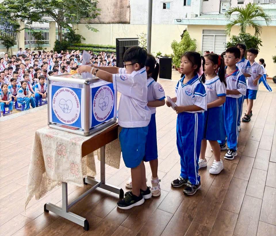 Không chỉ thế, buổi sinh hoạt còn lan tỏa tinh thần sẻ chia qua hoạt động quyên góp giúp đỡ đồng bào vùng bão lụt, nuôi dưỡng trong mỗi bạn nhỏ tấm lòng nhân ái, biết sống vì cộng đồng.
