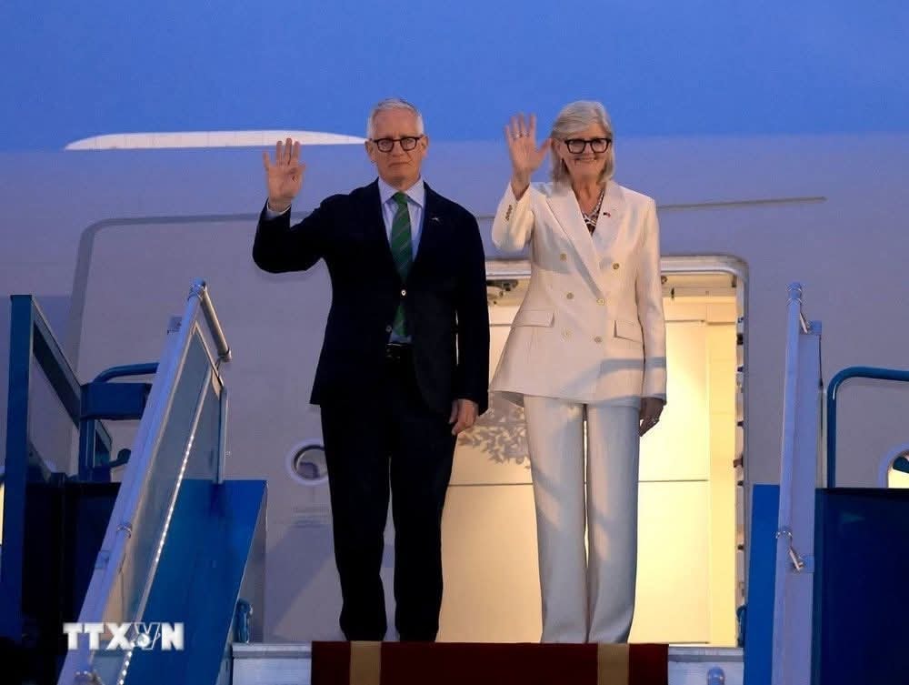 Chiều tối 9/9, Toàn quyền Australia Sam Mostyn và Phu quân Simeon Beckett đến Hà Nội, bắt đầu thăm cấp Nhà nước tới Việt Nam từ ngày 9-12/9/2025, theo lời mời của Chủ tịch nước Cộng hòa xã hội chủ nghĩa Việt Nam Lương Cường và Phu nhân.