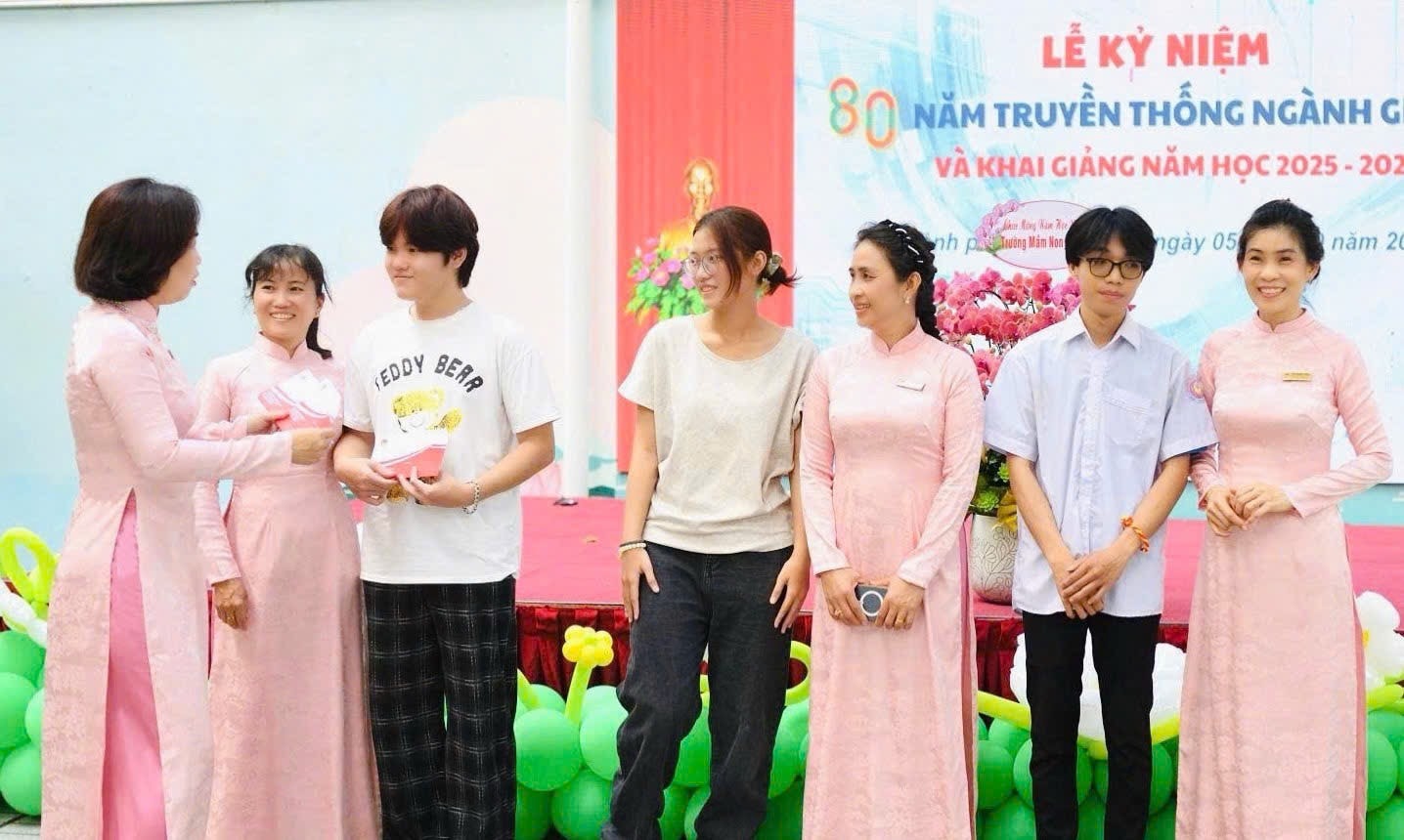 Nhân dịp lễ phát động, Ban Giám hiệu cùng Công đoàn nhà trường đã trao 05 phần quà cho con em viên chức, người lao động có thành tích xuất sắc trong kỳ thi đại học vừa qua, như một sự khích lệ, động viên tinh thần hiếu học, lan tỏa thông điệp “Mỗi bông hoa – một tấm gương”.