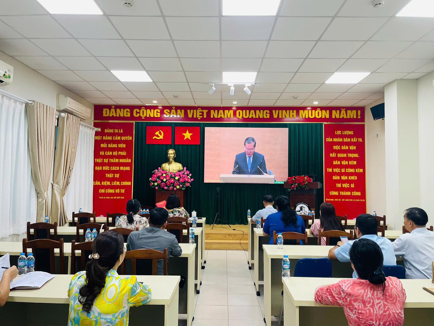 Tại 03 điểm cầu có các đồng chí tham dự: Hoàng Thị Tố Nga – Bí thư Đảng ủy, Chủ tịch HĐND phường; Nguyễn Kim Đức – Phó Bí thư Thường trực Đảng ủy; Mai Thị Hồng Hoa – Phó Bí thư Đảng ủy, Chủ tịch UBND phường; Phạm Thị Ngọc Minh – Ủy viên Ban Thường vụ, Chủ tịch Ủy ban Mặt trận Tổ quốc Việt Nam phường cùng các đồng chí trong Ban Thường vụ, Ban Chấp hành Đảng bộ phường, bí thư các tổ chức đảng và ban giám hiệu các trường, Trưởng trạm y tế phường và cùng toàn thể cán bộ, công chức, đảng viên phường Bến Thành.