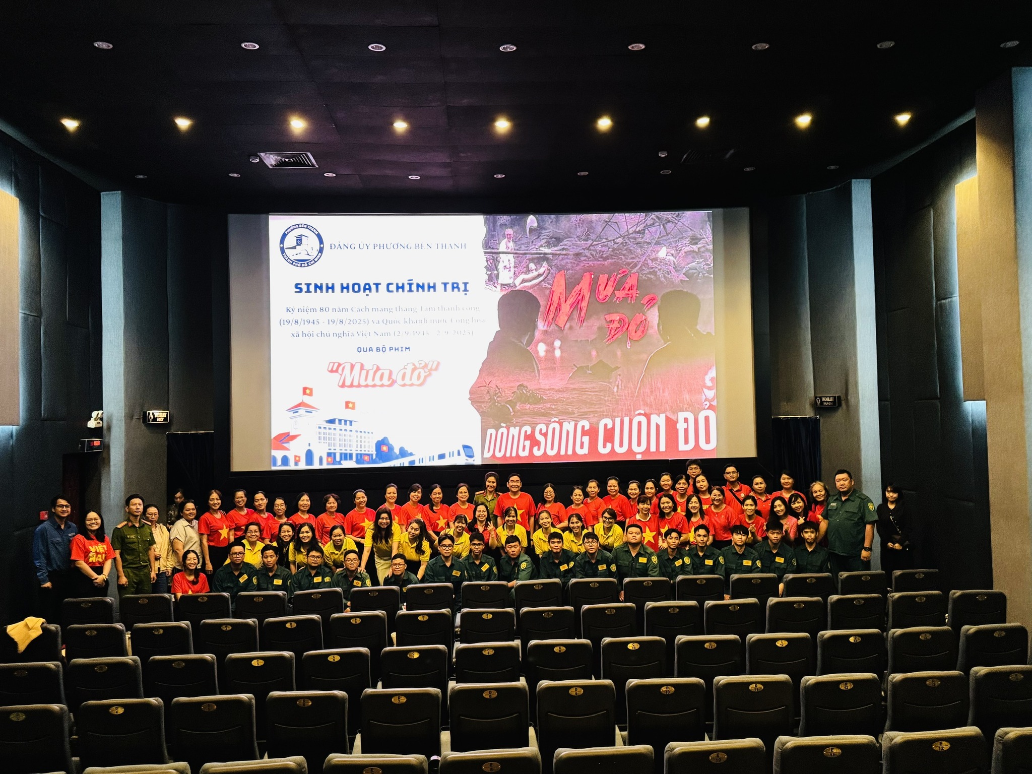 Sáng 17/9/2025, tiếp tục hưởng ứng chuỗi hoạt động kỷ niệm 80 năm Cách mạng tháng Tám thành công (19/8/1945 – 19/8/2025) và Quốc khánh nước Cộng hòa xã hội chủ nghĩa Việt Nam (02/9/1945 – 02/9/2025), Đảng ủy phường Bến Thành tổ chức đợt sinh hoạt chính trị tư tưởng thông qua xem bộ phim “Mưa Đỏ” – tác phẩm điện ảnh tái hiện hình ảnh bi tráng về cuộc chiến đấu 81 ngày đêm bảo vệ Thành cổ Quảng Trị vào mùa hè đỏ lửa 1972.