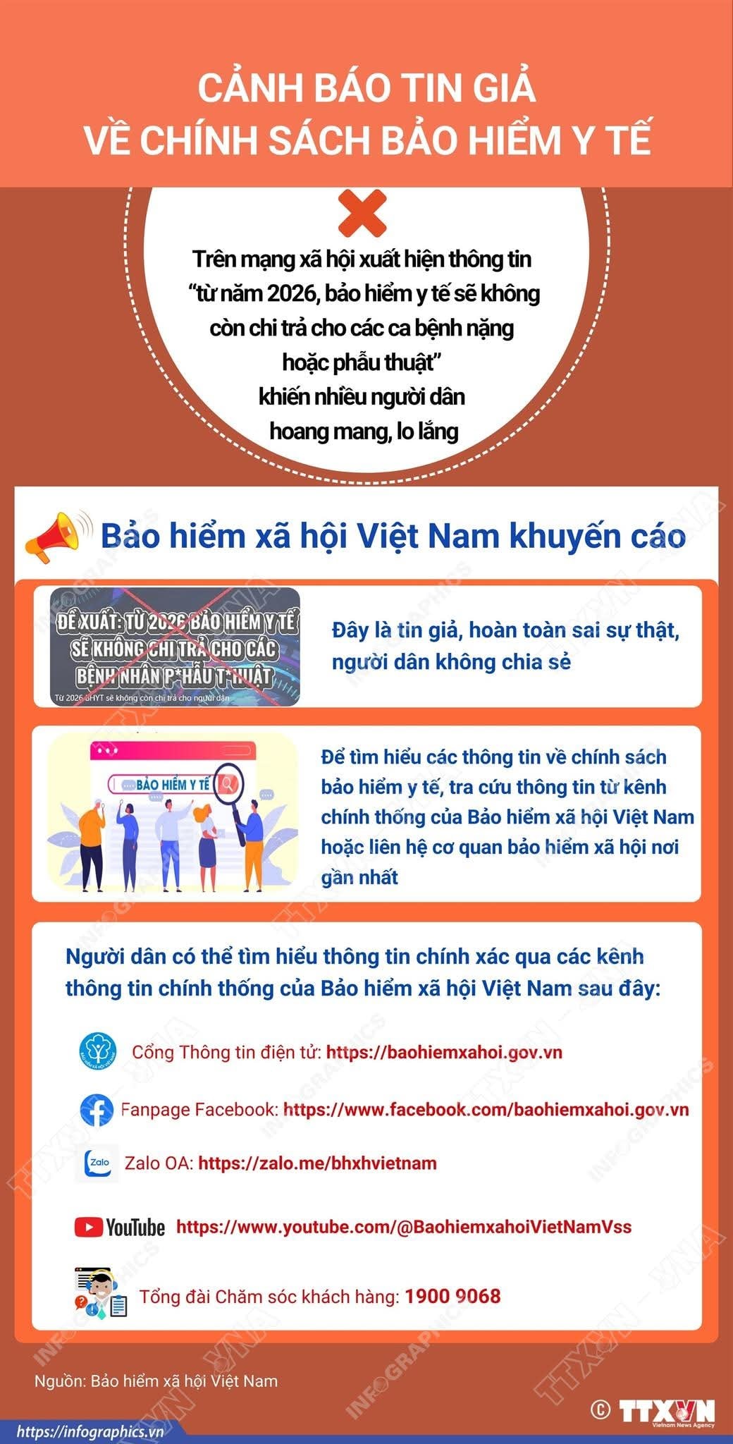 Trên mạng xã hội đang xuất hiện thông tin không chính xác là “từ năm 2026, bảo hiểm y tế sẽ không còn chi trả cho các ca bệnh nặng hoặc phẫu thuật” khiến nhiều người dân hoang mang, lo lắng. Bảo hiểm xã hội Việt Nam khẳng định, đây là tin giả, hoàn toàn sai sự thật.