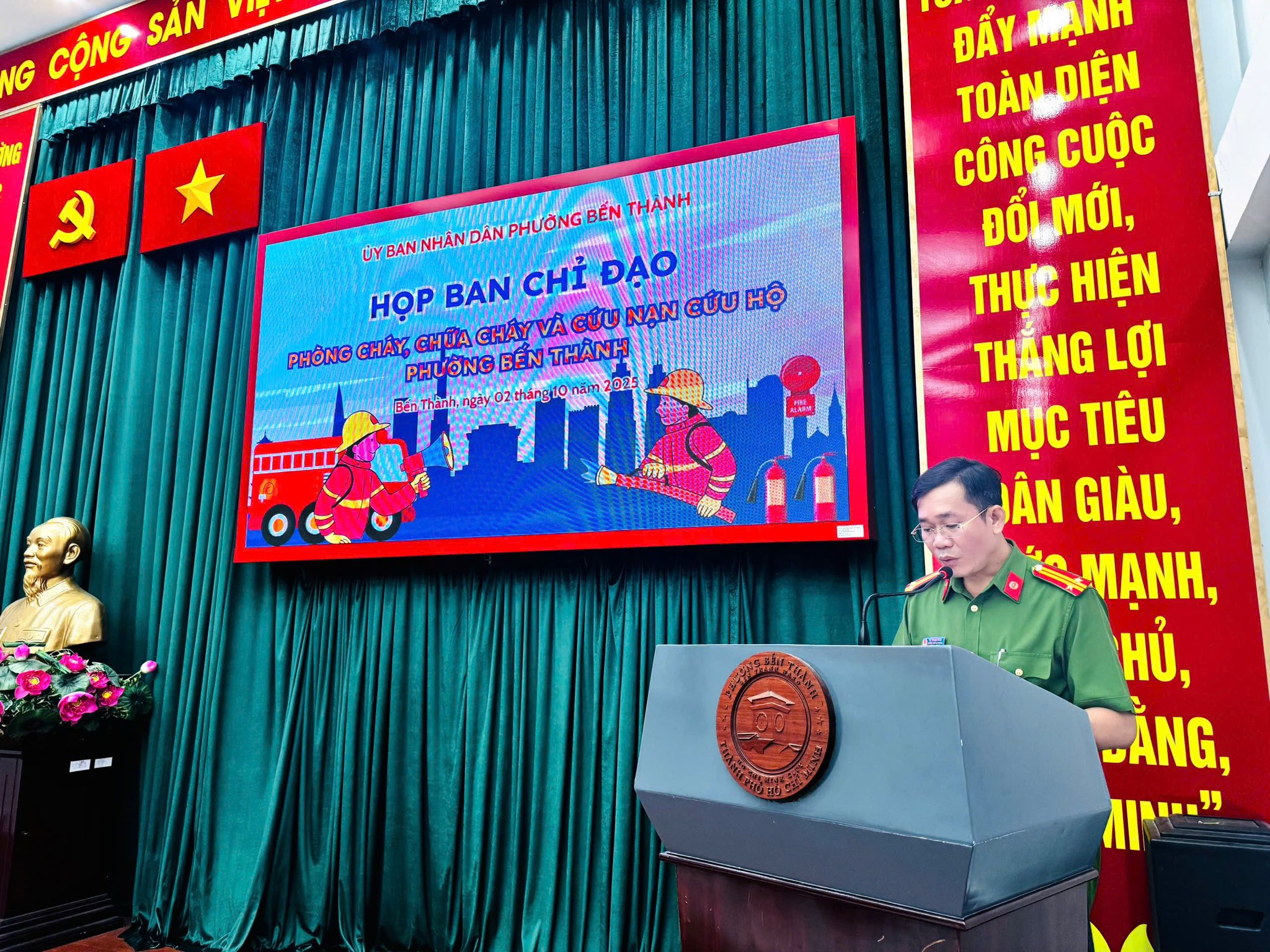 Sáng ngày 02/10/2025, Ủy ban nhân dân phường Bến Thành tổ chức họp Ban chỉ đạo về phòng cháy chữa cháy và cứu nạn, cứu hộ triển khai chương trình, kế hoạch công tác Phòng cháy chữa cháy và cứu nạn, cứu hộ hằng năm của Ủy ban nhân dân phường. Hướng dẫn, kiểm tra việc tổ chức thực hiện và tổng hợp tình hình, báo cáo sơ kết, tổng kết rút kinh nghiệm, đề xuất khen thưởng công tác phòng cháy chữa cháy và cứu nạn, cứu hộ của phường.