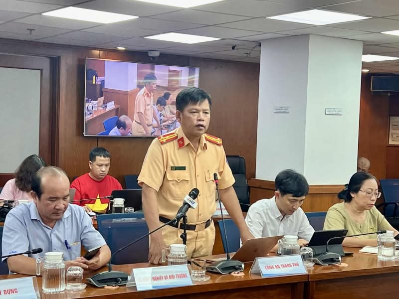 Thượng tá Nguyễn Văn Bình, Phó trưởng Phòng CSGT Công an TP Hồ Chí Minh thông tin tại họp báo.