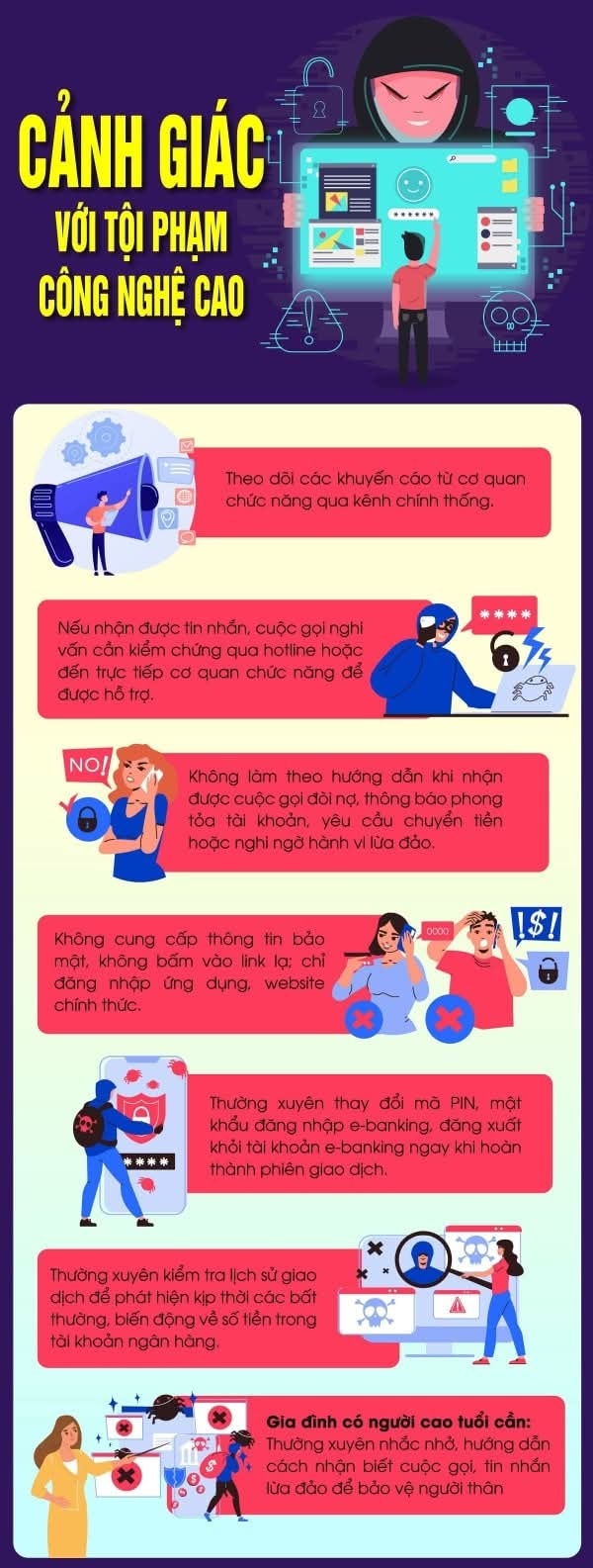 Gần đây, tình trạng tội phạm công nghệ cao, lừa đảo tài chính qua các kênh điện tử có chiều hướng gia tăng, với nhiều thủ đoạn tinh vi, như mạo danh ngân hàng gửi tin nhắn, phát tán đường link/QR code giả mạo, giả danh cơ quan chức năng, lừa đảo tuyển dụng “việc nhẹ lương cao” từ nước ngoài, hay sử dụng công nghệ AI/deepfake để chiếm đoạt thông tin cá nhân và tài sản./.
