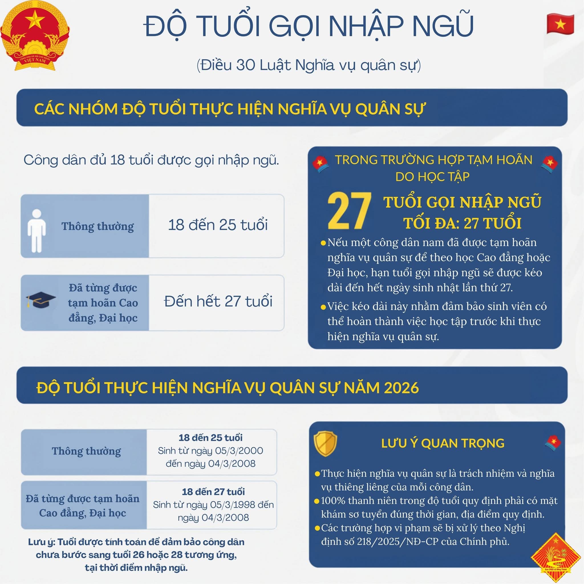 <div class="x14z9mp xat24cr x1lziwak x1vvkbs xtlvy1s x126k92a"> <div dir="auto">18 đến 25 tuổi - thời điểm đẹp nhất để khẳng định bản lĩnh, cống hiến cho đất nước.</div> </div> <div class="x14z9mp xat24cr x1lziwak x1vvkbs xtlvy1s x126k92a"> <div dir="auto">Còn ai đang học Cao đẳng, Đại học thì yên tâm nhé vì 27 tuổi vận kịp thực hiện nghĩa vụ thiêng liêng với Tổ quốc!</div> </div> <div class="x14z9mp xat24cr x1lziwak x1vvkbs xtlvy1s x126k92a"> <div dir="auto"><span class="html-span xdj266r x14z9mp xat24cr x1lziwak xexx8yu xyri2b x18d9i69 x1c1uobl x1hl2dhg x16tdsg8 x1vvkbs"><a class="x1i10hfl xjbqb8w x1ejq31n x18oe1m7 x1sy0etr xstzfhl x972fbf x10w94by x1qhh985 x14e42zd x9f619 x1ypdohk xt0psk2 x3ct3a4 xdj266r x14z9mp xat24cr x1lziwak xexx8yu xyri2b x18d9i69 x1c1uobl x16tdsg8 x1hl2dhg xggy1nq x1a2a7pz xkrqix3 x1sur9pj x1fey0fg x1s688f" tabindex="0" role="link" href="http://p.bt/?fbclid=IwZXh0bgNhZW0CMTAAYnJpZBExN2xCTGUwNkhnMXdxcFJ2agEedmBjFu0gPwDtfNjXIJudcfX4i76COe4qXkhdcldBBPqPJAiLMhXdtrsehBI_aem_PxLPvLammCtGKnwz5XAATQ" target="_blank" rel="nofollow noopener noreferrer">P.BT</a></span></div> </div>