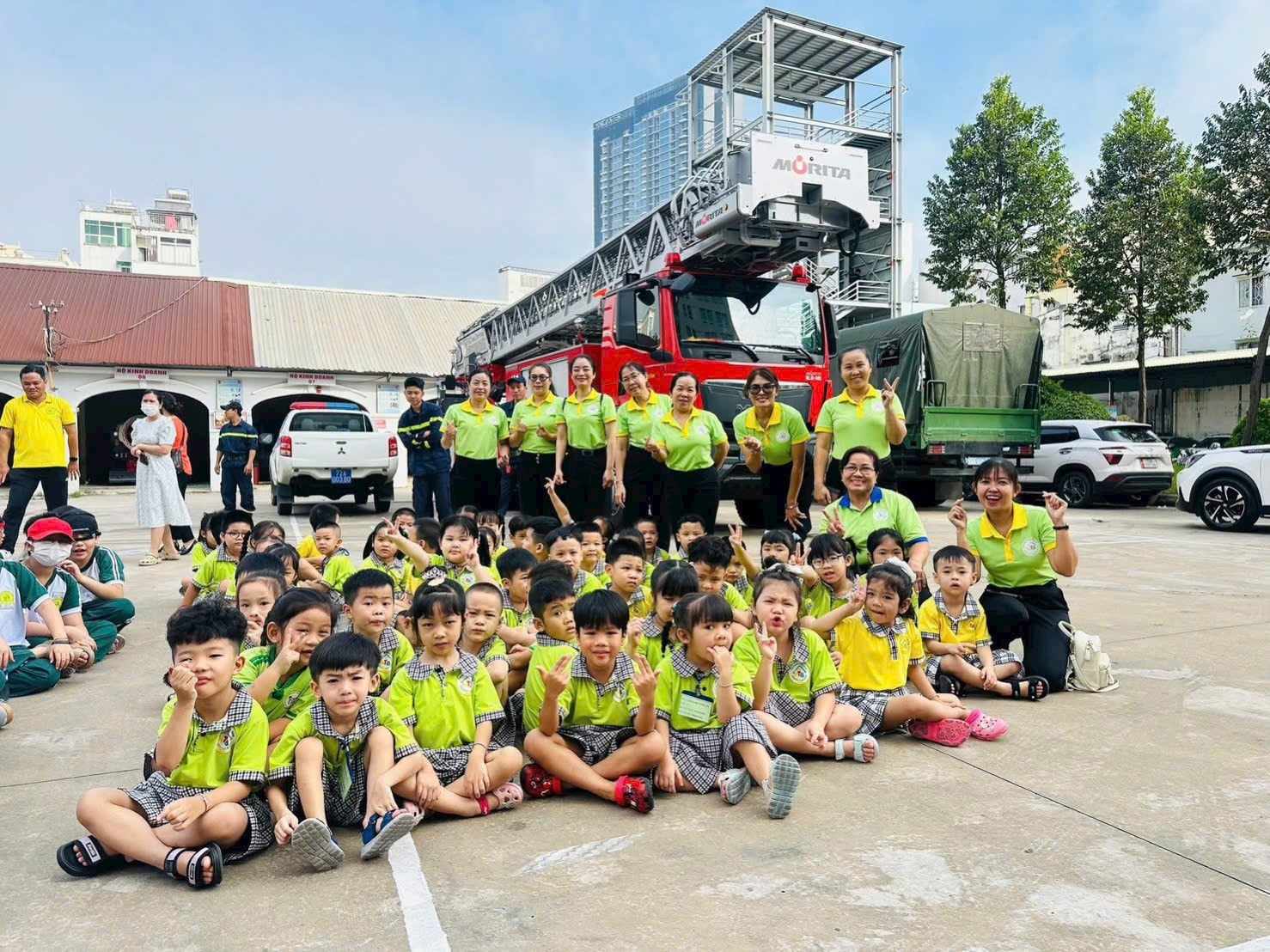 Các cô & các bé không chỉ được trải nghiệm thực tế, mà được bồi đắp ý thức, kỹ năng sống an toàn cho các bé ngay từ khi còn nhỏ – góp phần lan tỏa tinh thần “Mỗi người dân là một chiến sĩ phòng cháy, chữa cháy”.