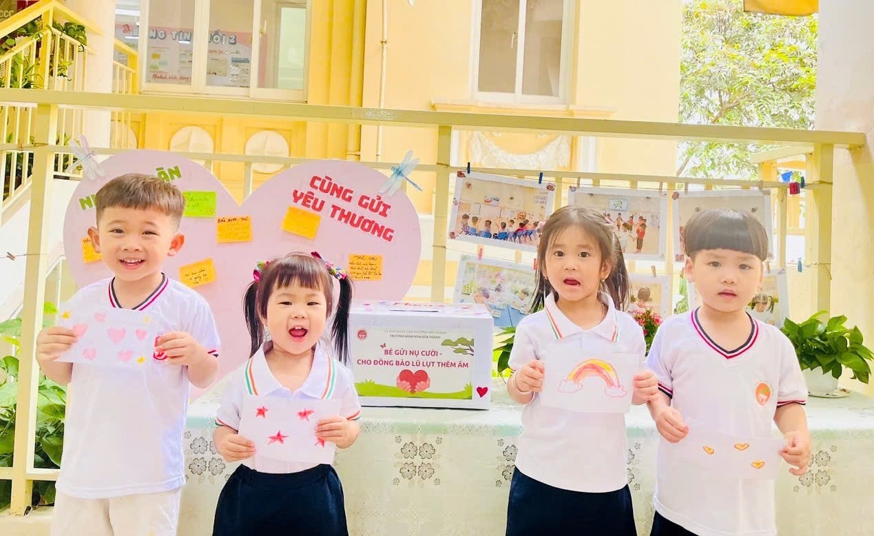 Trong suốt những ngày diễn ra hoạt động, các cô giáo đã giúp học sinh hiểu về tinh thần sẻ chia thông qua những video clip xúc động về cuộc sống của người dân vùng lũ. Các bé hào hứng vẽ tranh, hát những bài hát về yêu thương và đoàn kết, gieo những hạt mầm nhân ái đầu đời.