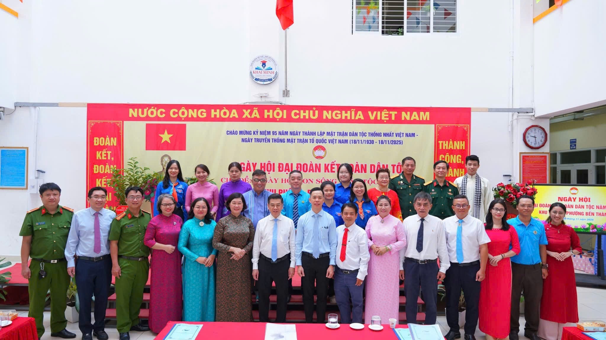 Ngày 8/11, Khu phố 10 phường Bến Thành tổ chức Ngày hội “Đại đoàn kết toàn dân tộc”. Tham dự có các đồng chí: Nguyễn Văn Dũng, Thành ủy viên, Phó Chủ tịch UBND TPHCM; Hoàng Thị Tố Nga, Bí thư Đảng ủy, Chủ tịch HĐND phường; Nguyễn Kim Đức, Phó Bí thư Thường trực Đảng ủy phường; Huỳnh Vĩnh Lâm, Phó Chủ tịch Ủy ban MTTQVN phường – Chủ tịch Công đoàn phường; Ngô Quốc Thuận, Bí thư Chi bộ khu phố – Trưởng Ban công tác mặt trận Khu phố 10; Lê Thị Hải, Trưởng khu phố 10.