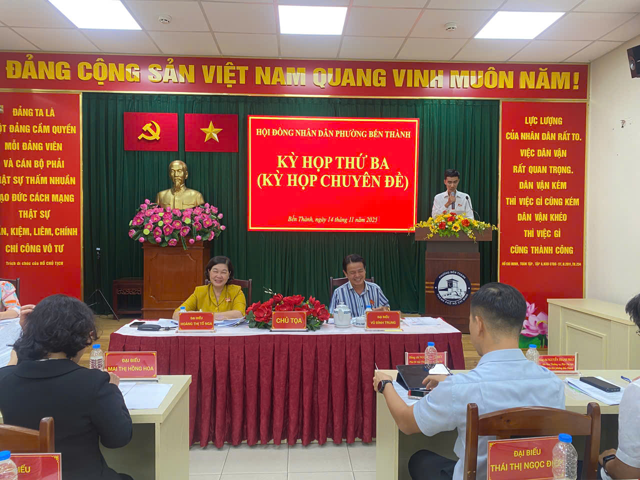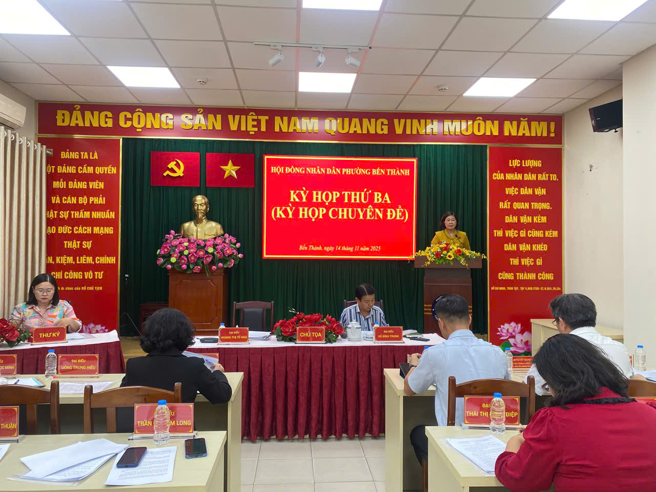 Ngày 14/11/2025, Hội đồng nhân dân phường Bến Thành (nhiệm kỳ 2021 – 2026) tổ chức Kỳ họp thứ 3 (kỳ họp chuyên đề) nhằm xem xét, thảo luận và thông qua Nghị quyết về điều chỉnh dự toán thu – chi ngân sách phường năm 2025 và điều chỉnh phân bổ dự toán ngân sách năm 2025.