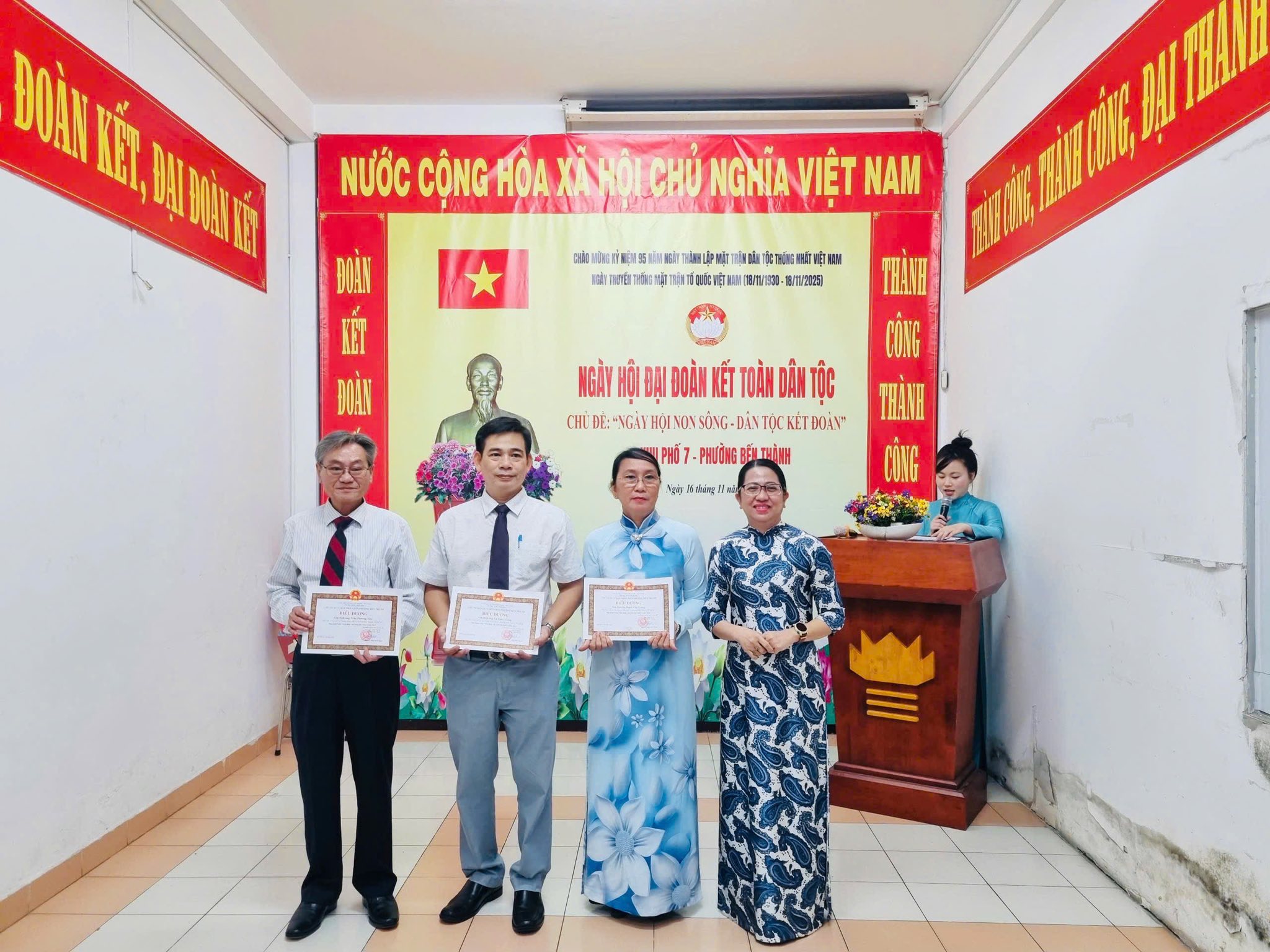 Sáng ngày 16/11/2025, Khu phố 7 đã tổ chức Ngày hội Đại đoàn kết toàn dân tộc năm 2025. Tham dự Ngày hội có các đồng chí: Nguyễn Diệp Bích Hạnh – Ủy viên Ban Thường vụ Đảng ủy, Phó Chủ tịch UBND phường; Bùi Ngọc Hưng – Đảng ủy viên, Phó Chánh Văn phòng Đảng ủy; Nguyễn Văn Hội – Phó Chủ tịch UBMTTQ Việt Nam phường, Chủ tịch Hội Cựu Chiến binh phường cùng cấp ủy chi bộ, Trưởng, phó khu phố, Ban công tác Mặt trận, các chi hội, đoàn thể và đông đảo Nhân dân trên địa bàn Khu phố 7.