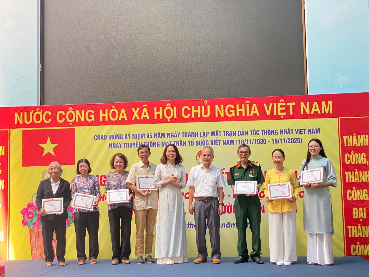 Mở đầu chương trình, ông Nguyễn Minh Tâm – Trưởng Ban Công tác Mặt trận Khu phố 5 – đã cùng các đại biểu ôn lại chặng đường 95 năm xây dựng và trưởng thành của Mặt trận Dân tộc Thống nhất Việt Nam – Ngày truyền thống Mặt trận Tổ quốc Việt Nam (18/11/1930 – 18/11/2025), khẳng định vai trò to lớn của khối đại đoàn kết trong phát triển đất nước và xây dựng đời sống văn hóa tại khu dân cư.
