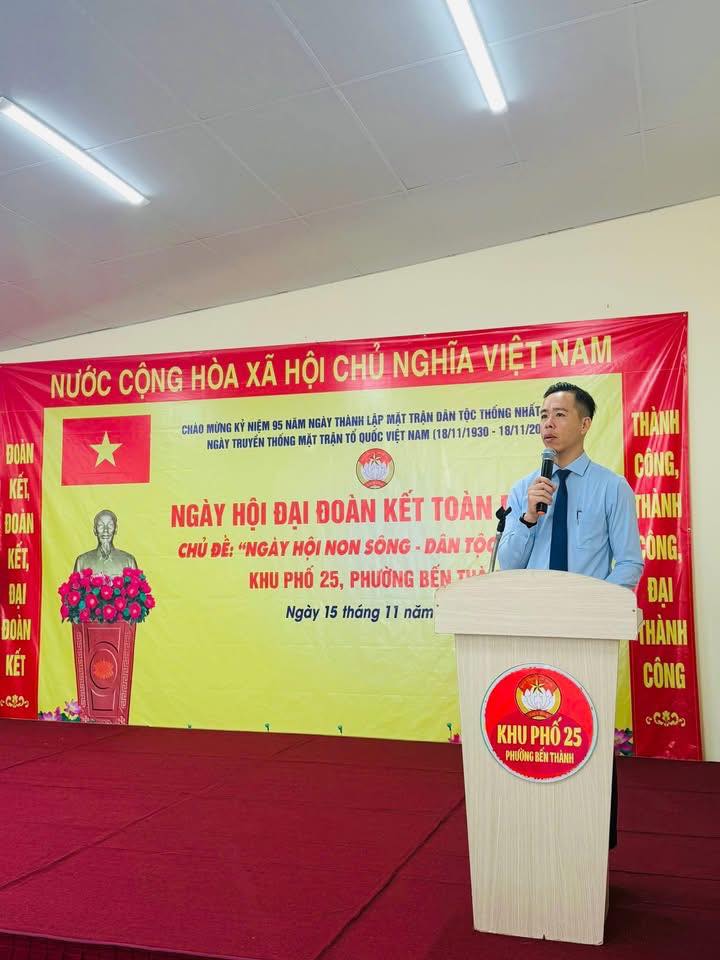 Sáng ngày 15/11/2025, Khu phố 25 phường Bến Thành tổ chức Ngày hội Đại đoàn kết toàn dân tộc năm 2025. Tham dự Ngày hội có các đồng chí: Nguyễn Kim Đức, Phó Bí thư Thường trực Đảng ủy phường; Nguyễn Phương Phi – Đảng ủy viên, Phó Trưởng phòng Văn hoá – xã hội phường cùng cấp ủy chi bộ, Trưởng khu phố, Ban công tác Mặt trận, các chi hội, đoàn thể và đông đảo Nhân dân trên địa bàn Khu phố 25.