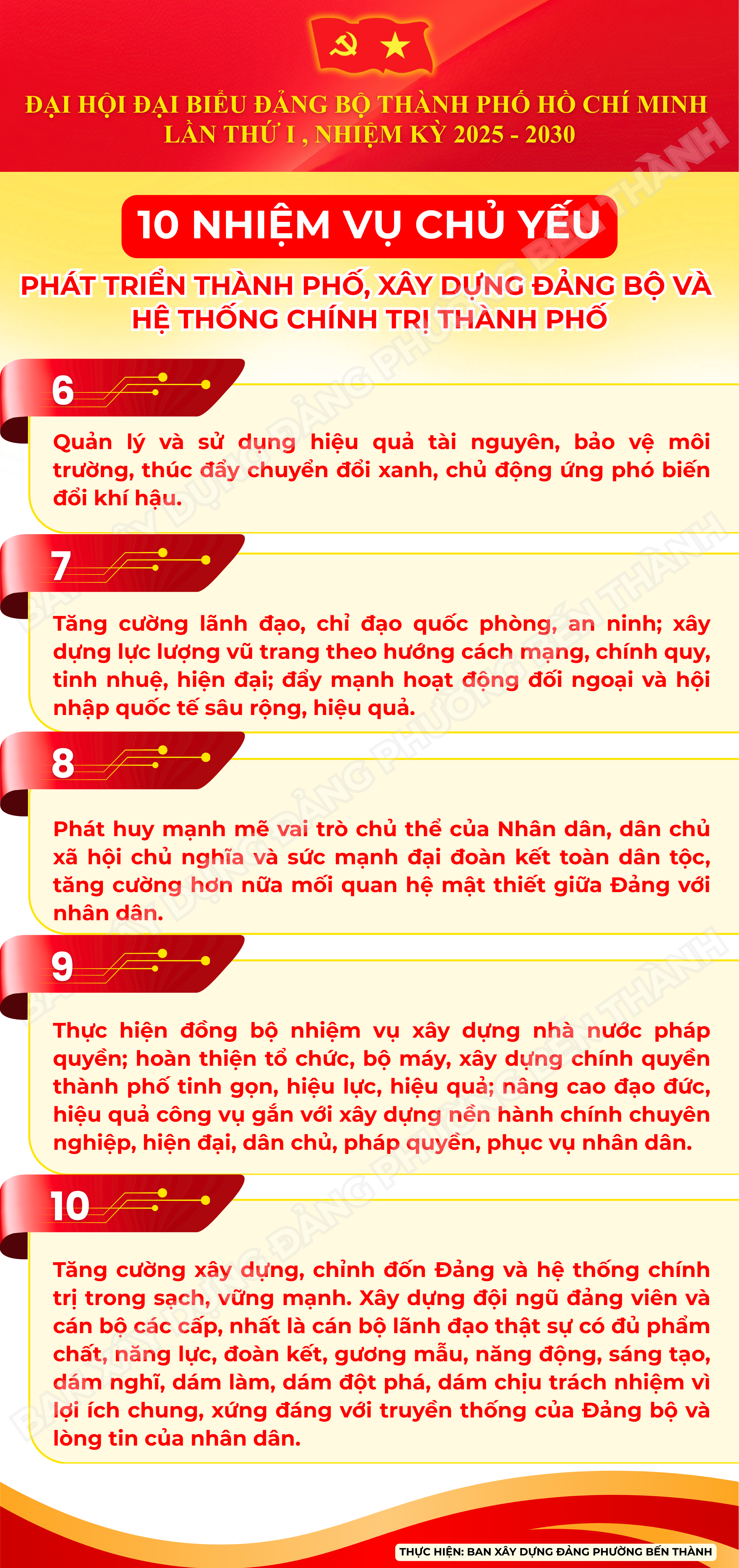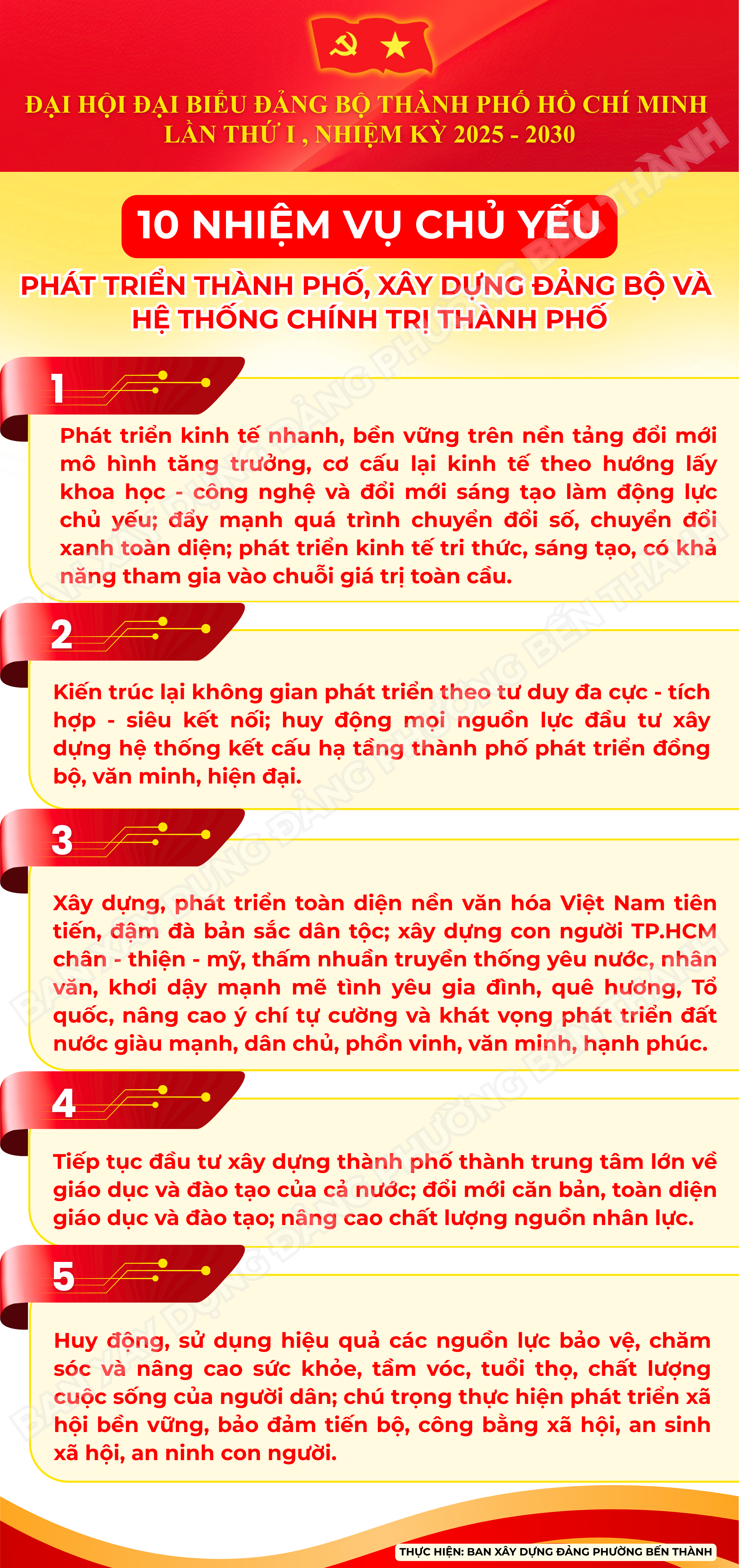 INFOGRAPHIC TUYÊN TRUYỀN NGHỊ QUYẾT ĐẠI HỘI ĐẠI BIỂU ĐẢNG BỘ THÀNH PHỐ HỒ CHÍ MINH LẦN THỨ I, NHIỆM KỲ 2025 – 2030