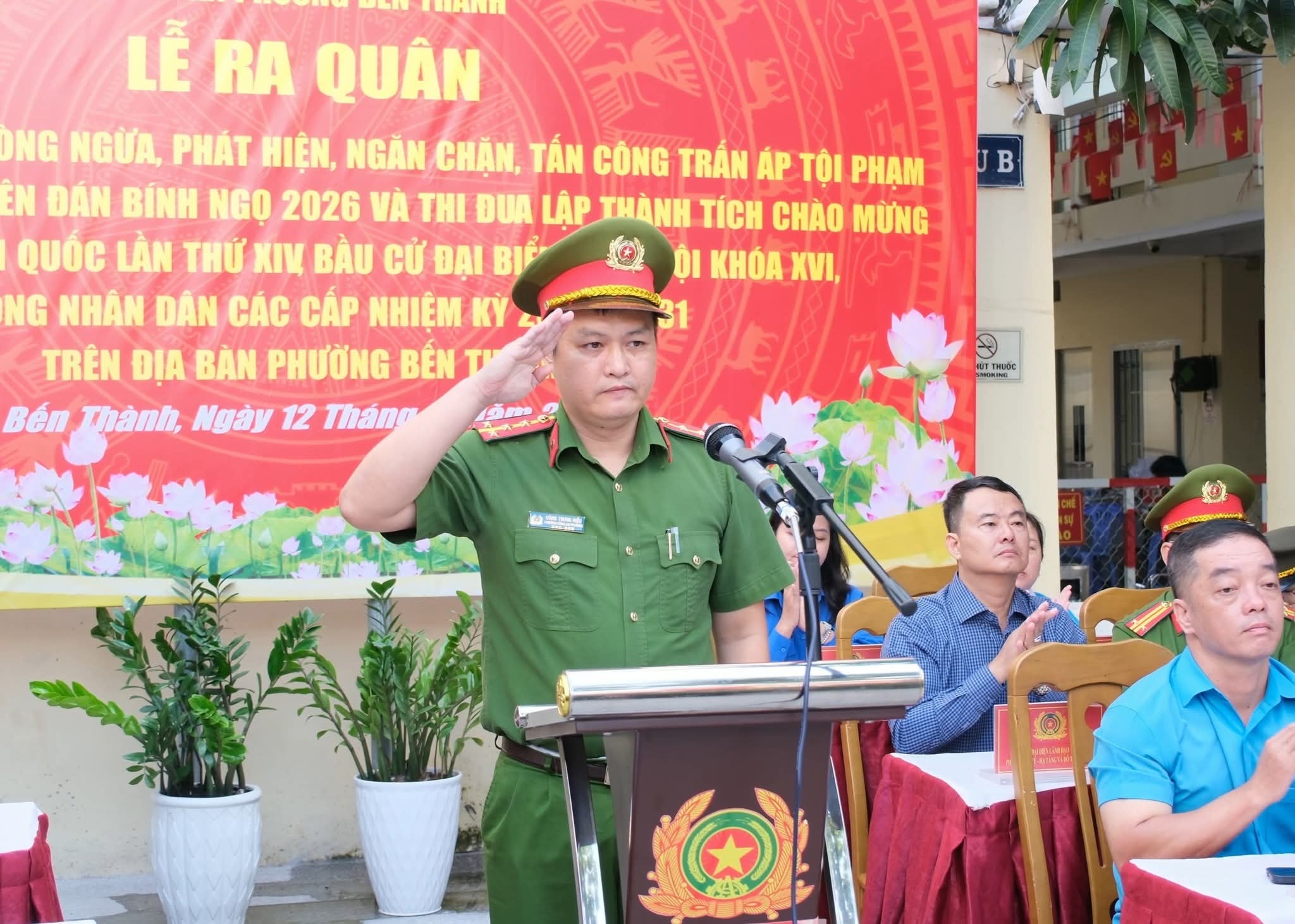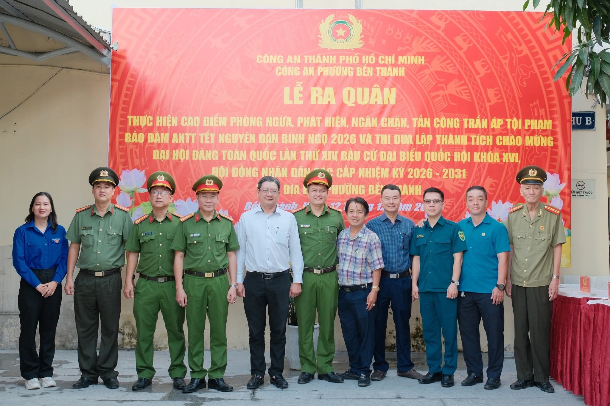 Sáng ngày 12/12/2025, Công an phường Bến Thành tổ chức Lễ ra quân thực hiện cao điểm phòng ngừa – phát hiện – ngăn chặn – tấn công trấn áp tội phạm, bảo đảm an ninh, trật tự phục vụ Nhân dân đón Tết Nguyên đán Bính Ngọ 2026; đồng thời thi đua lập thành tích chào mừng Đại hội Đảng toàn quốc lần thứ XIV.