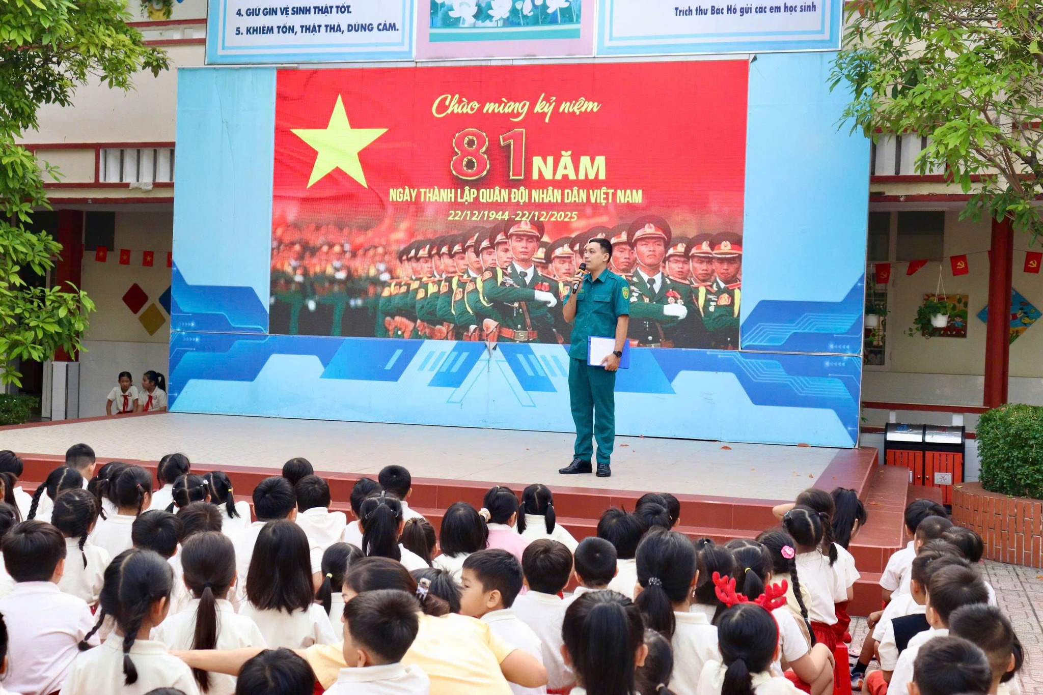 Nội dung tuyên truyền tập trung làm rõ ý nghĩa lịch sử của Ngày thành lập Quân đội nhân dân Việt Nam, những chiến công tiêu biểu gắn với các giai đoạn đấu tranh giành độc lập, thống nhất đất nước, bảo vệ vững chắc hòa bình, độc lập, chủ quyền và toàn vẹn lãnh thổ của Tổ quốc. Qua đó, góp phần bồi dưỡng lòng yêu nước, niềm tự hào dân tộc, nâng cao ý thức trách nhiệm của thế hệ trẻ trong học tập, rèn luyện, phấn đấu trở thành những công dân tốt, cháu ngoan Bác Hồ.