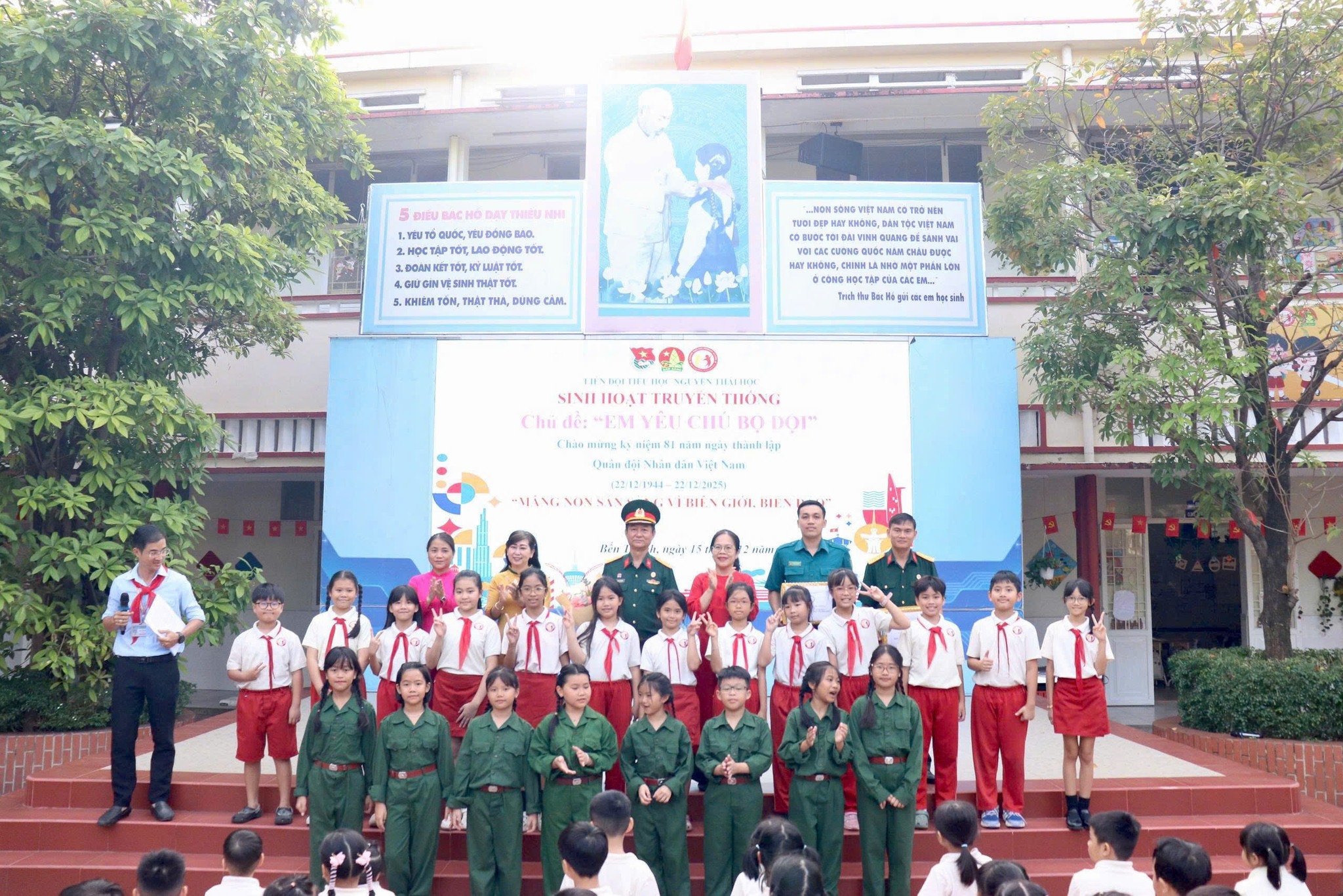 Sáng ngày 15/12/2025, nhân kỷ niệm 81 năm Ngày thành lập Quân đội nhân dân Việt Nam (22/12/1944 – 22/12/2025), Ban Chỉ huy Quân sự Phường Bến Thành phối hợp Hội Cựu chiến binh phường Bến Thành tổ chức buổi tuyên truyền, giáo dục truyền thống cách mạng cho các em học sinh Trường Tiểu học Nguyễn Thái Học.