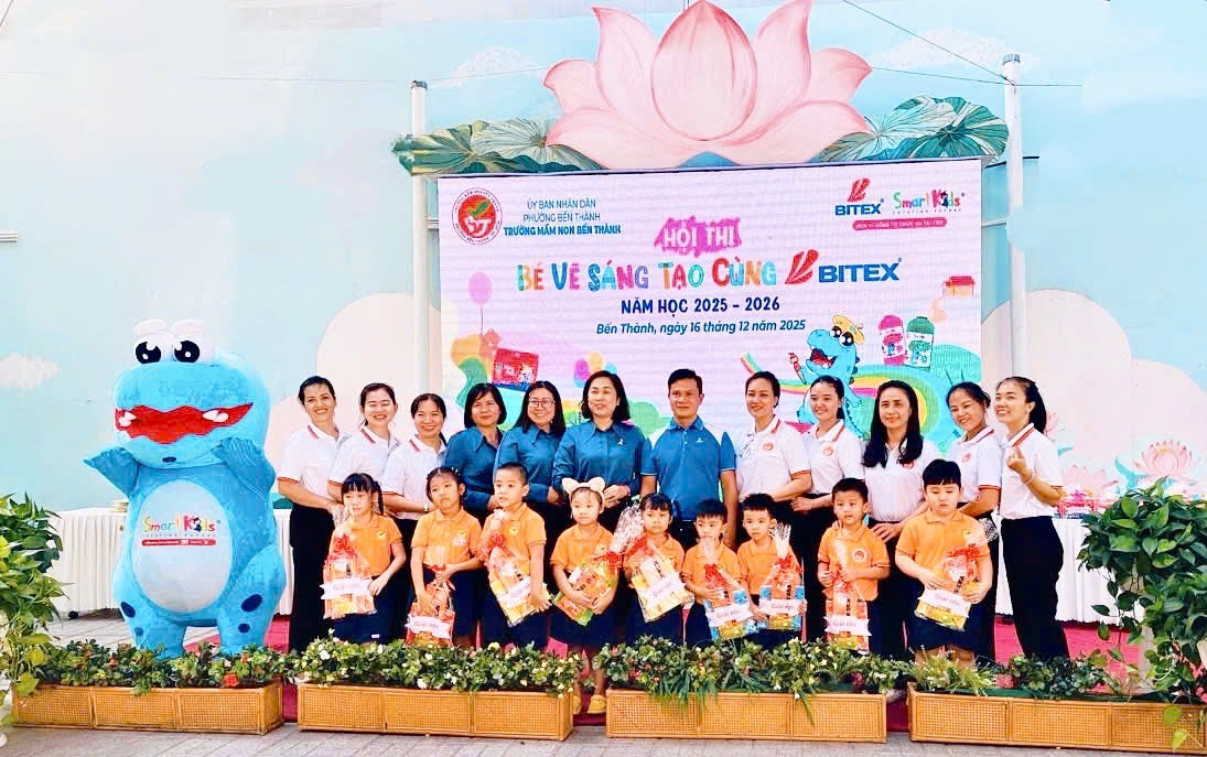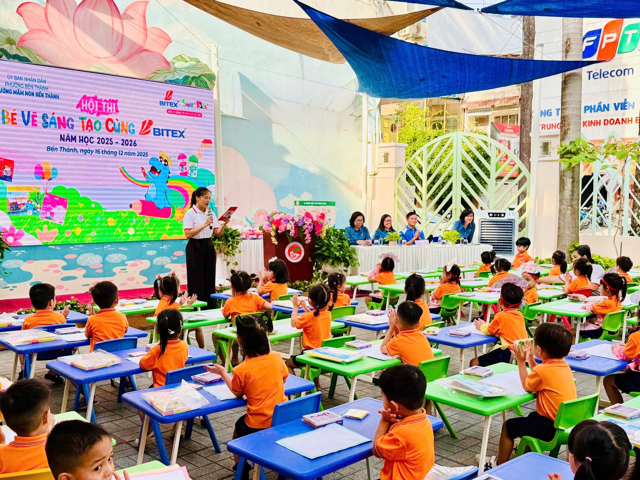 Sáng ngày 16/12/2025, Trường Mầm non Bến Thành phối hợp cùng Công ty Cổ phần Xuất nhập khẩu Bình Tây (Bitex) tổ chức Hội thi “Bé vẽ sáng tạo cùng Bitex” cấp trường, dành cho học sinh Khối Mầm (3 – 4 tuổi), Khối Chồi (4 – 5 tuổi) và Khối Lá (5 – 6 tuổi) trong năm học 2025 – 2026.