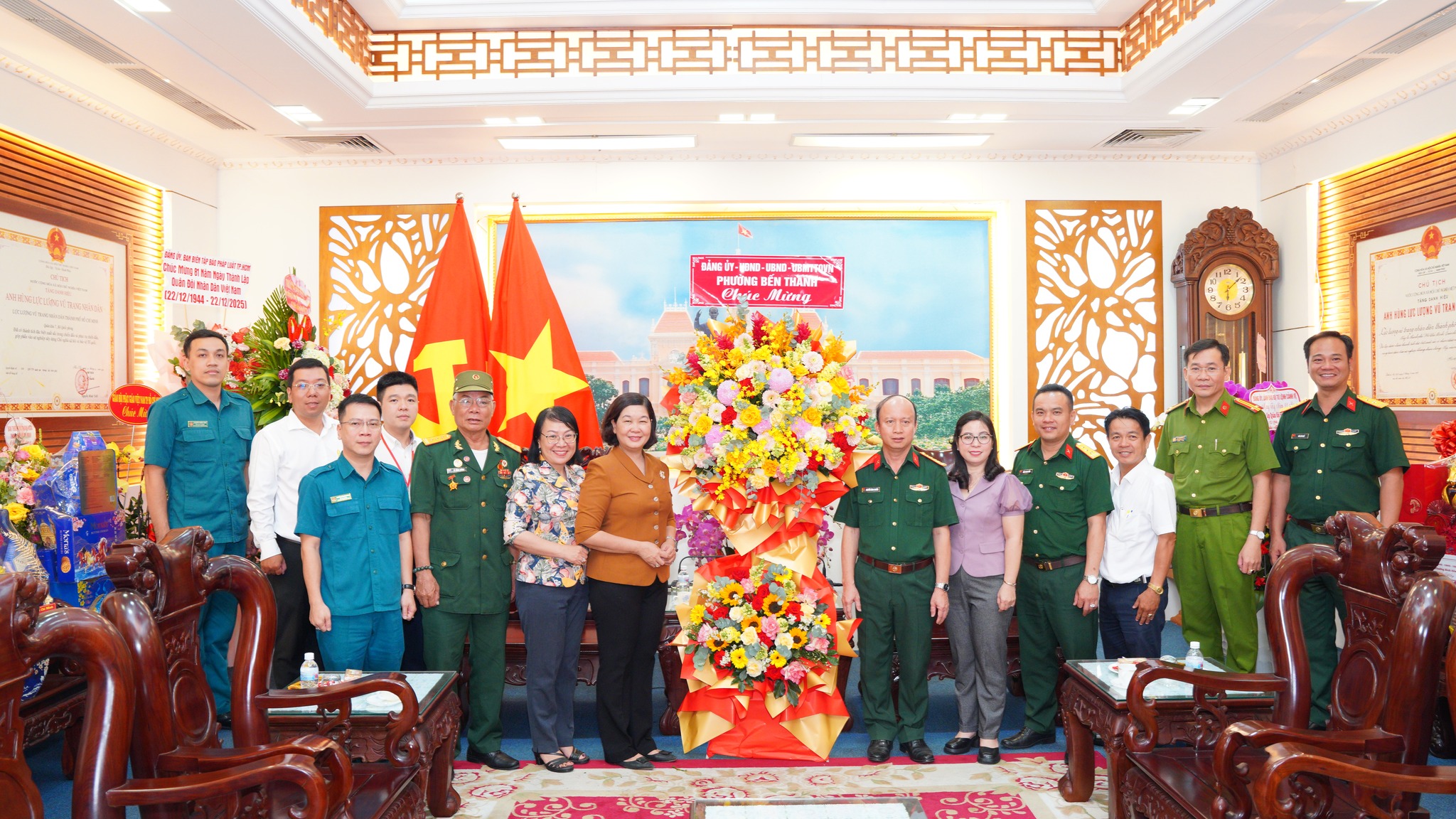 Sáng ngày 22/12/2025, Đảng ủy – Hội đồng nhân dân – Ủy ban nhân dân – Ủy ban Mặt trận Tổ quốc Việt Nam phường Bến Thành đã đến thăm, chúc mừng các đơn vị gồm: Bộ Tư lệnh Thành phố Hồ Chí Minh, Ban Chỉ huy Bộ đội Biên phòng Thành phố và Phòng Hậu cần Bộ Tư lệnh Hải quân nhân kỷ niệm 81 năm Ngày thành lập quân đội nhân dân Việt Nam (22/12/1944 – 22/12/2025) và 36 năm Ngày hội Quốc phòng toàn dân (22/12/1989 – 22/12/2025).