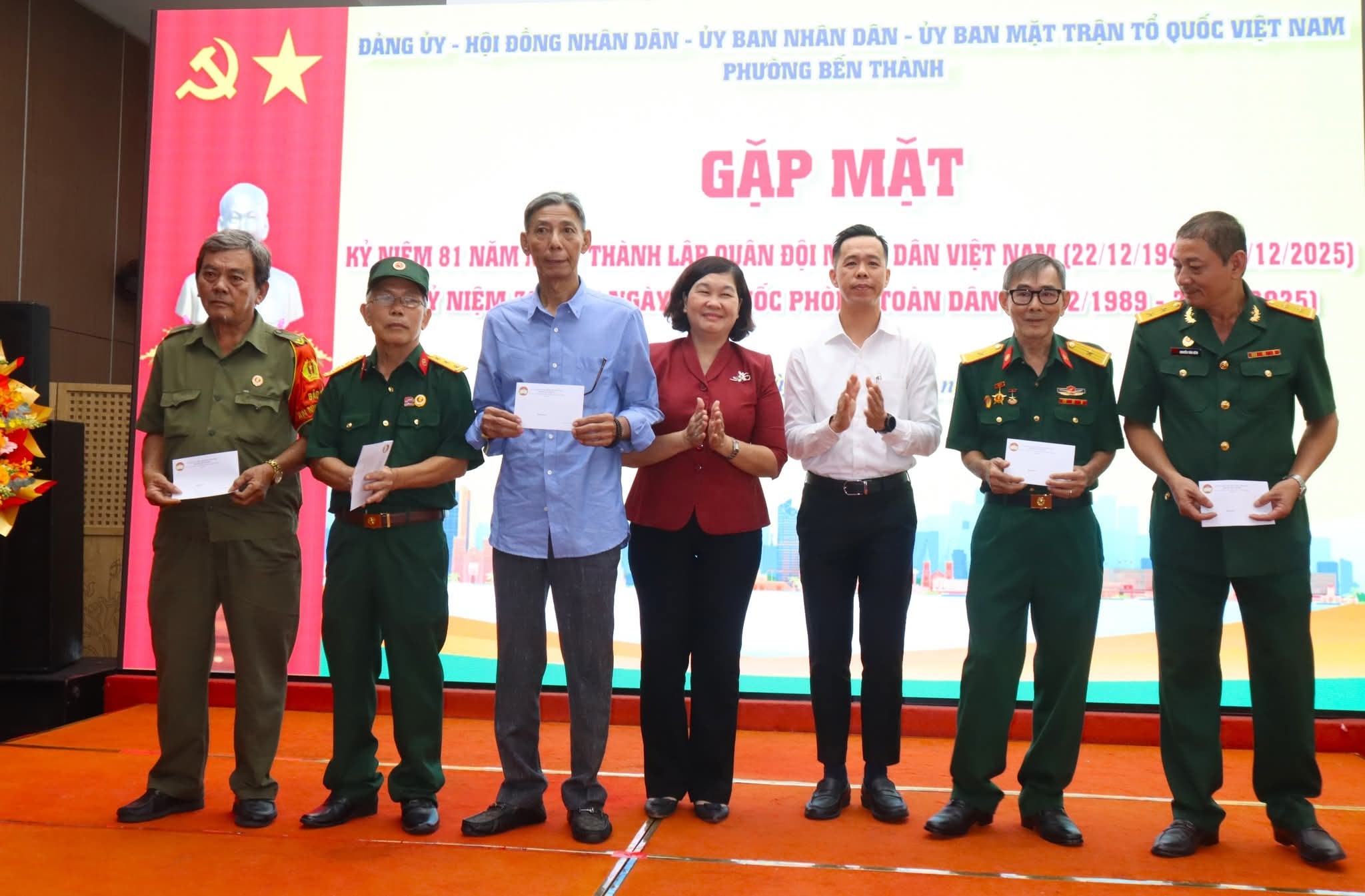 Ngày 22/12, Đảng ủy – HĐND – UBND – Ủy ban MTTQ Việt Nam phường Bến Thành tổ chức gặp mặt các đồng chí cán bộ từ cấp úy đến cấp Thượng tá Quân đội nghỉ hưu trên địa bàn phường nhân kỷ niệm 81 năm Ngày thành lập Quân đội nhân dân Việt Nam (22/12/1944 – 22/12/2025) và 36 năm Ngày hội Quốc phòng toàn dân (22/12/1989 – 22/12/2025).