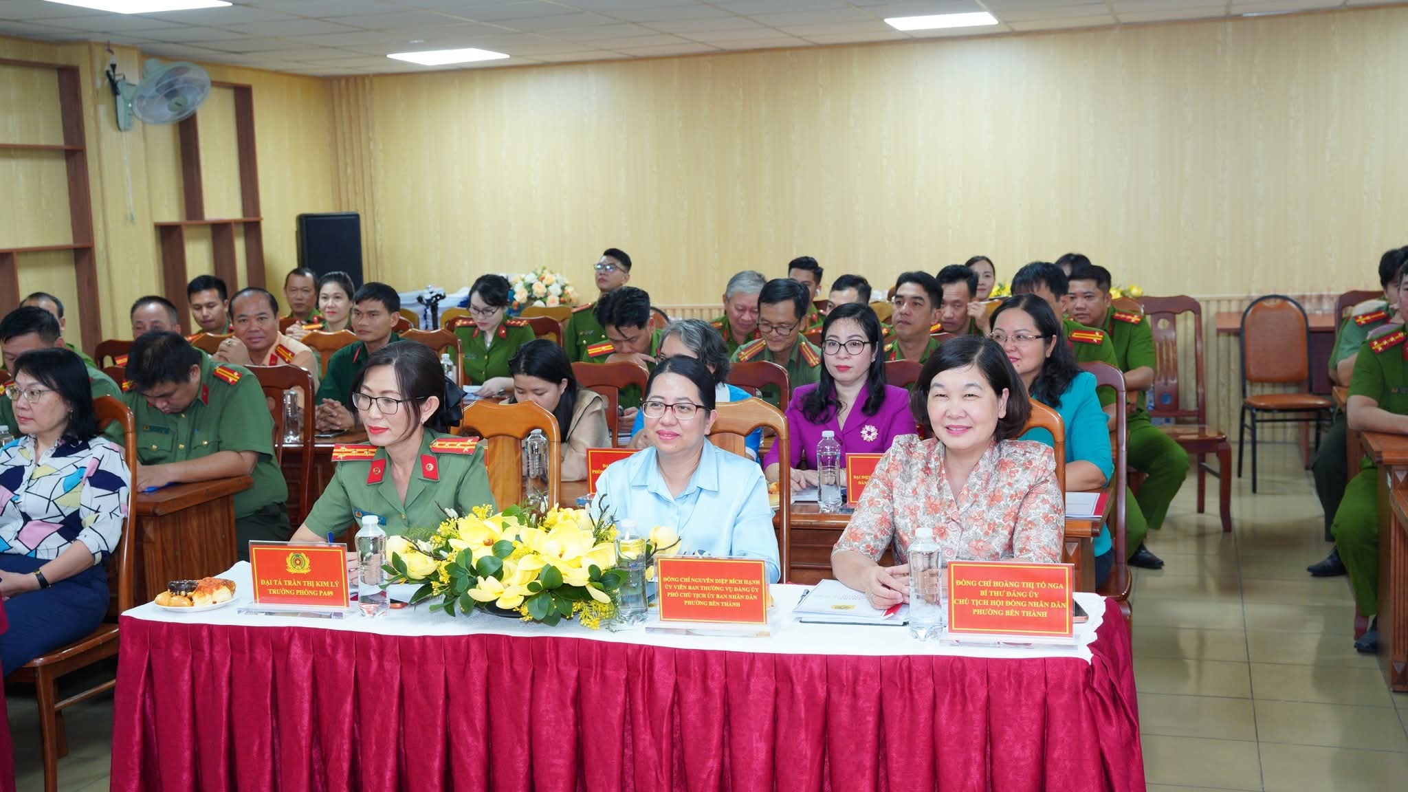 Tham dự có các đồng chí: Đại tá Trần Thị Kim Lý, Trưởng phòng an ninh điều tra Công an TPHCM; Hoàng Thị Tố Nga, Bí thư Đảng ủy, Chủ tịch HĐND phường; Nguyễn Diệp Bích Hạnh, Phó Chủ tịch UBND phường; Phạm Thị Ngọc Minh, Chủ tịch Ủy ban MTTQ Việt Nam phường; Đại úy Uông Trung Hiếu, Trưởng Công an phường; cùng các đồng chí đại diện lãnh đạo các ban Đảng ủy, các tổ chức chính trị – xã hội phường, Ban Chỉ huy Quân sự phường Bến Thành.