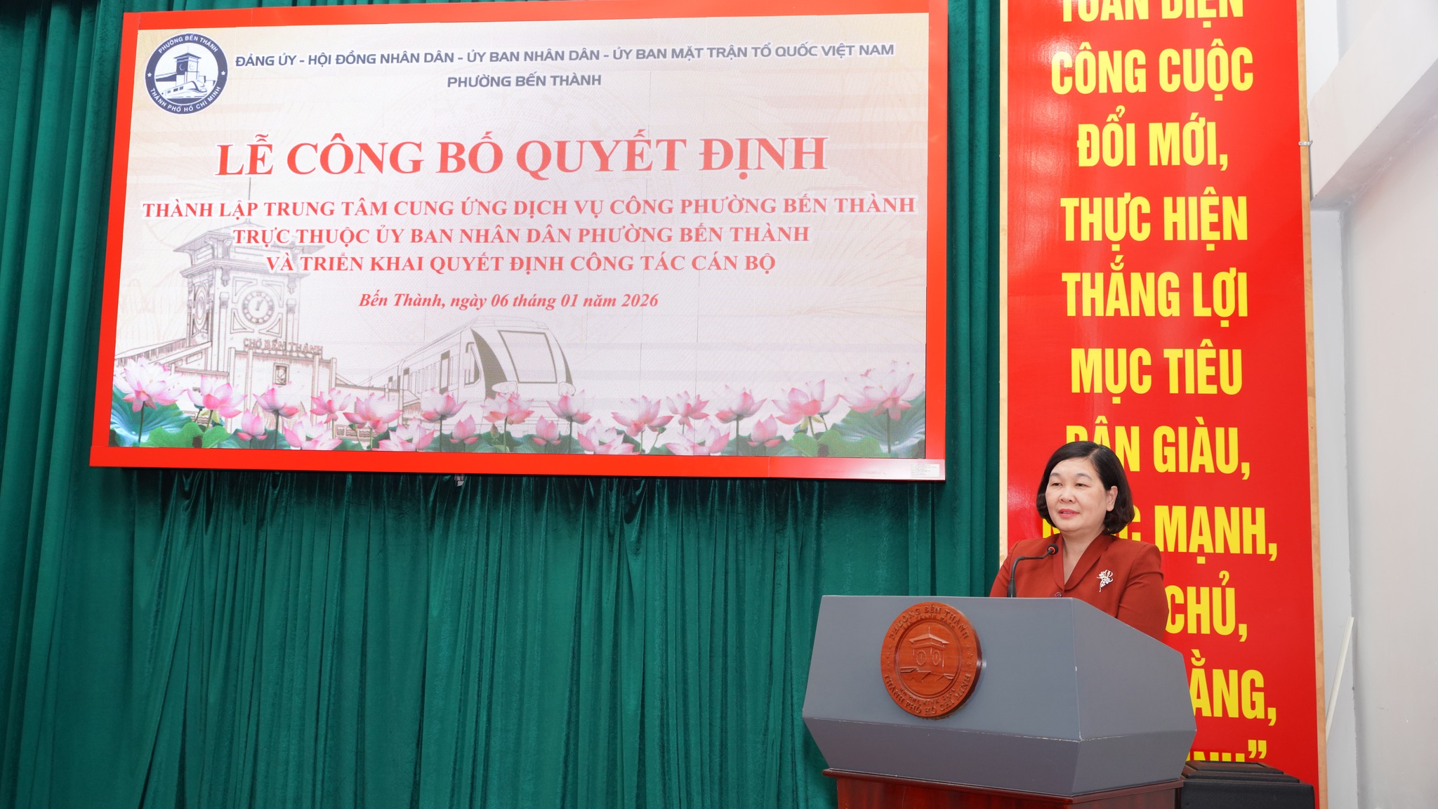 Tại hội nghị đã công bố quyết định Số: 2631/QĐ-UBND về việc thành lập Trung tâm Cung ứng dịch vụ công phường Bến Thành trực thuộc UBND phường, đồng thời chịu sự chỉ đạo, kiểm tra, hướng dẫn về chuyên môn, nghiệp vụ theo từng lĩnh vực của các sở, ban, ngành Thành phố; có tư cách pháp nhân, con dấu và tài khoản riêng.