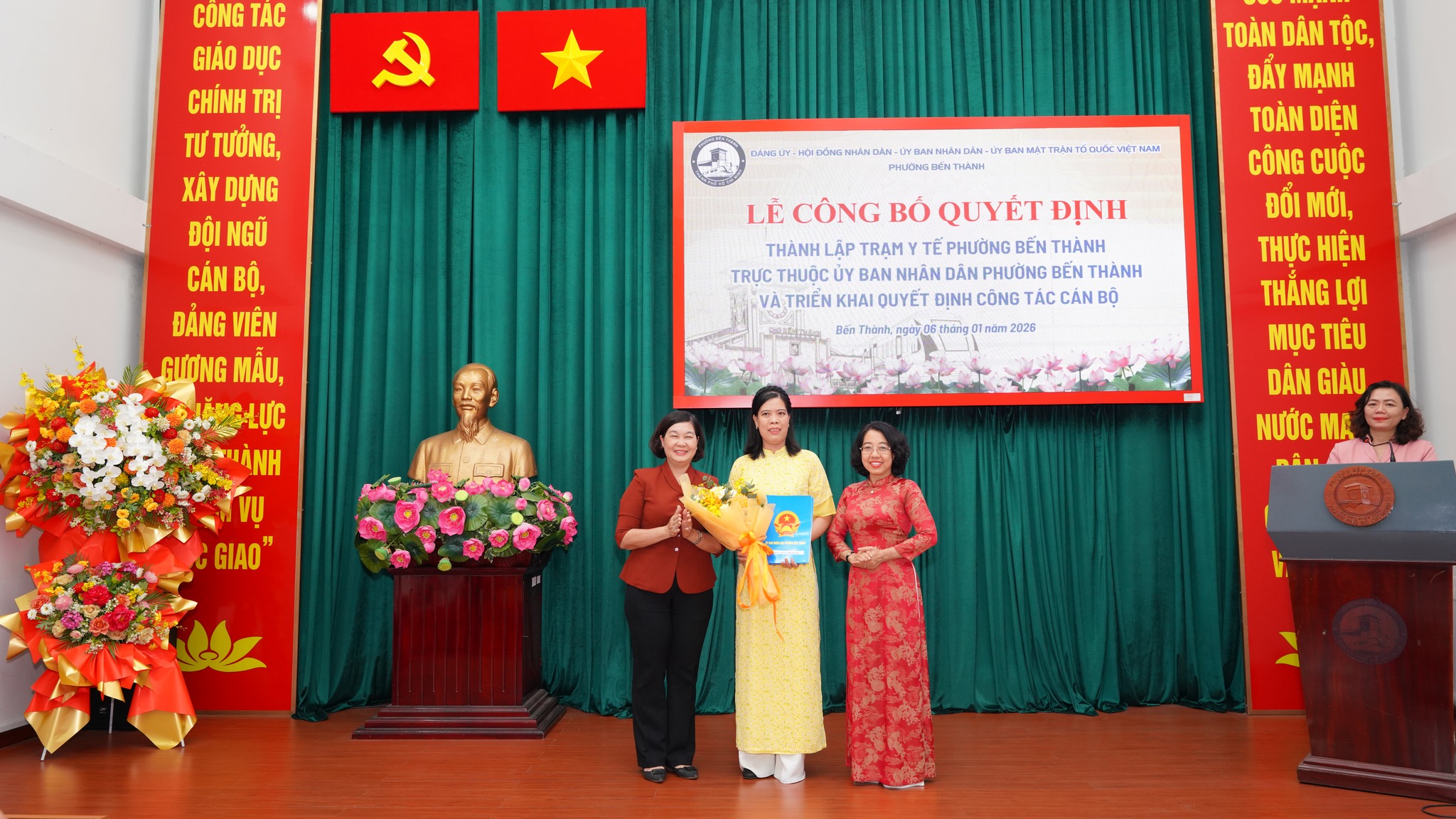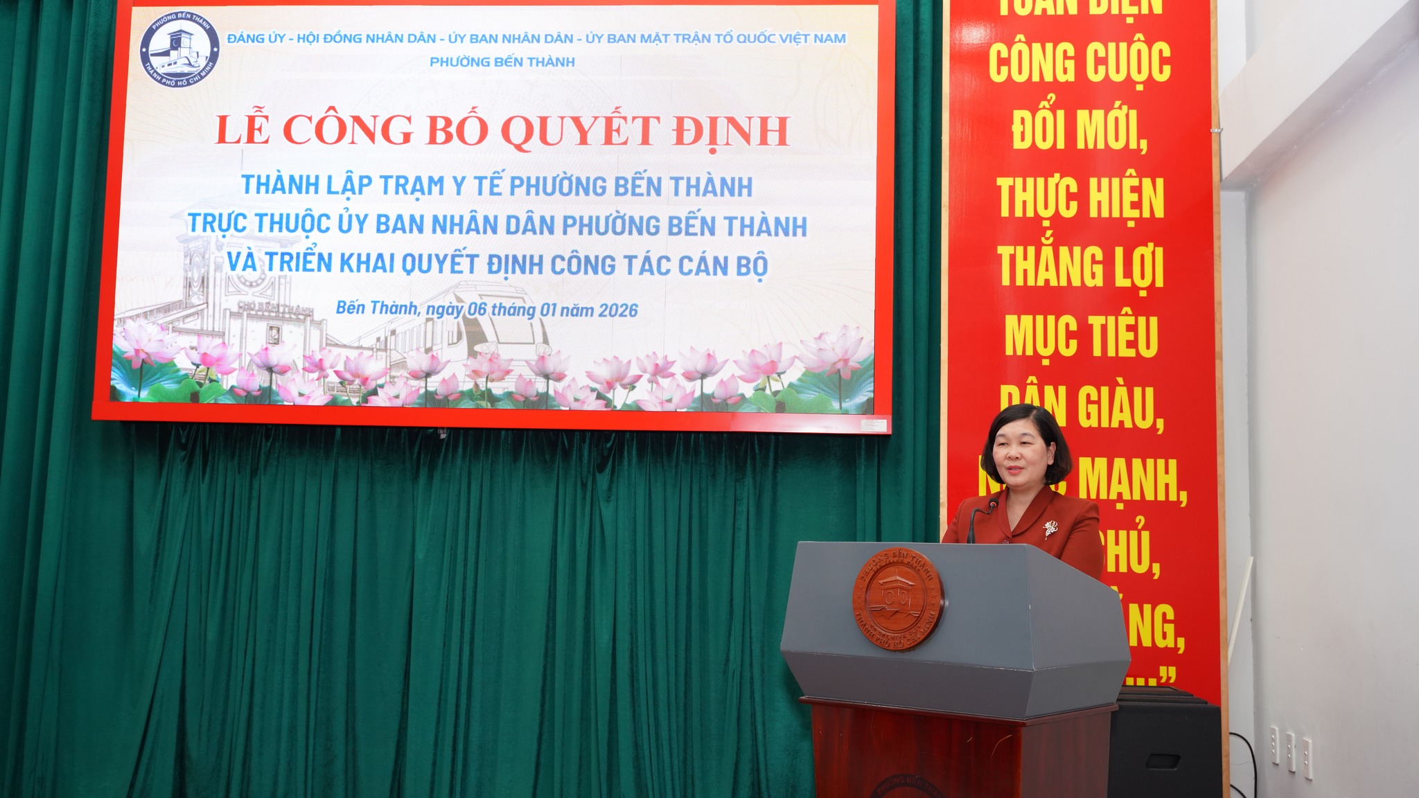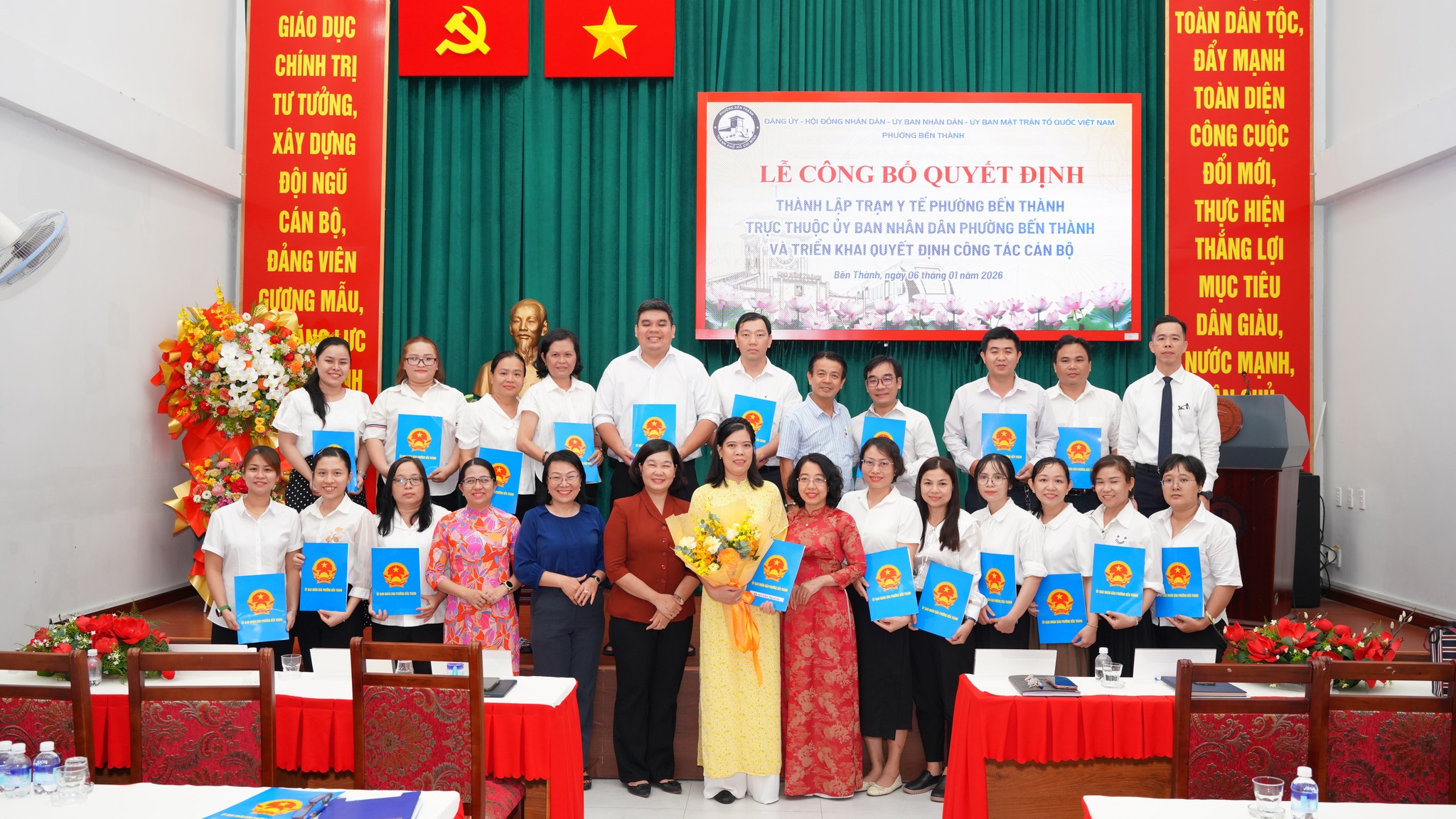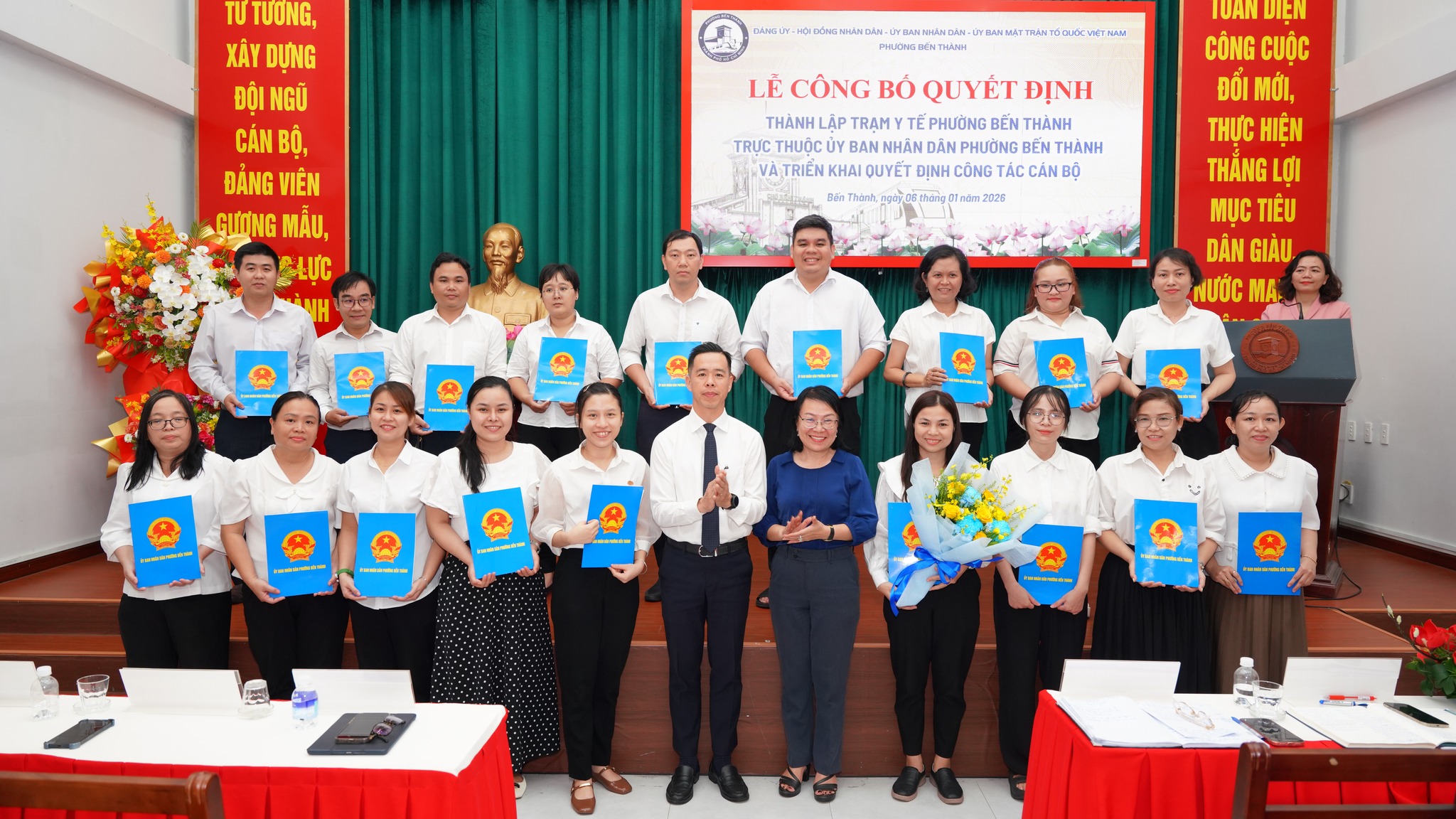 Tại hội nghị đã công bố quyết định Số: 2639/QĐ-UBND về việc Thành lập Trạm Y tế trực thuộc UBND phường Bến Thành. Trụ sở chính: số 227 đường Lý Tự Trọng, phường Bến Thành, Thành phố Hồ Chí Minh. Điểm trạm y tế 1: số 160 đường Nguyễn Công Trứ, phường Bến Thành, Thành phố Hồ Chí Minh. Điểm trạm y tế 2: số 307 đường Phạm Ngũ Lão, phường Bến Thành, Thành phố Hồ Chí Minh. Quyết định có hiệu lực kể từ ngày 01/1/ 2026.