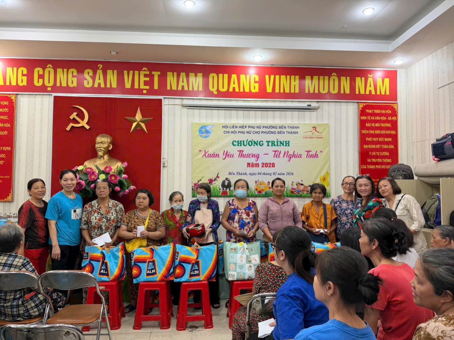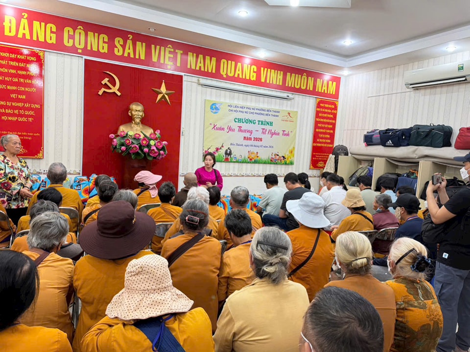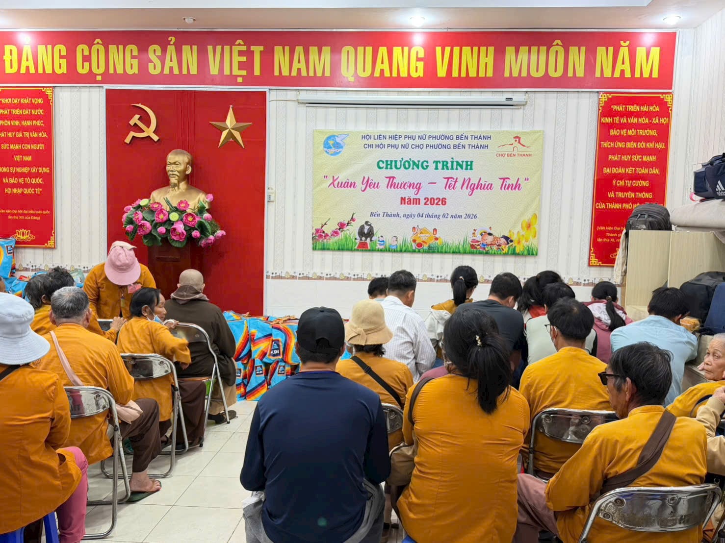 Vì một cái tết ấm no, hạnh phúc và nghĩa tình, sáng ngày 04/02/2026, Chi hội Phụ nữ chợ phường Bến Thành phối hợp cùng các thương nhân, nhà hảo tâm tổ chức chương trình “Xuân Yêu Thương – Tết Nghĩa Tình” tại hội trường cửa Bắc chợ Bến Thành.