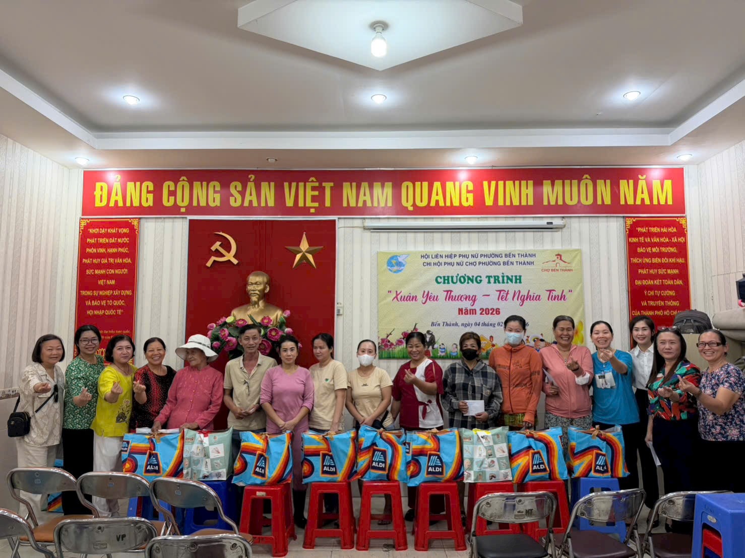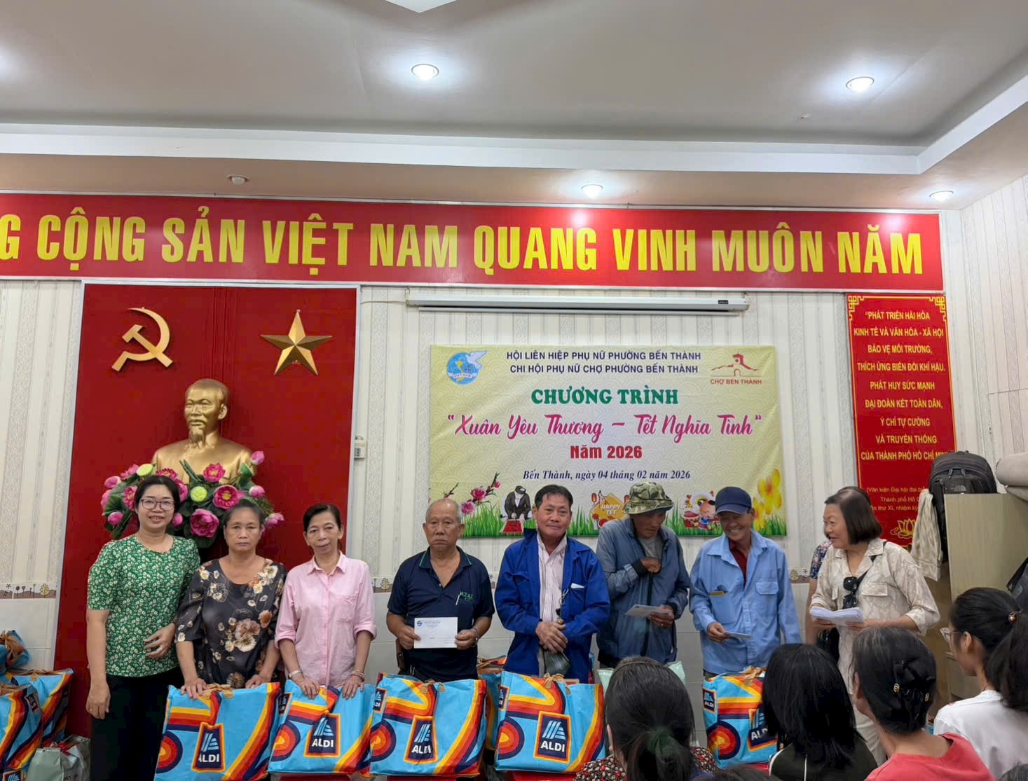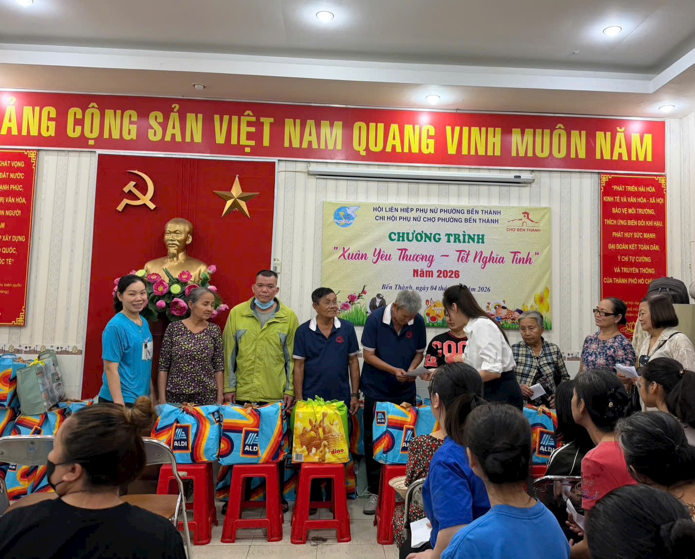 Vì một cái tết ấm no, hạnh phúc và nghĩa tình, sáng ngày 04/02/2026, Chi hội Phụ nữ chợ phường Bến Thành phối hợp cùng các thương nhân, nhà hảo tâm tổ chức chương trình “Xuân Yêu Thương – Tết Nghĩa Tình” tại hội trường cửa Bắc chợ Bến Thành.