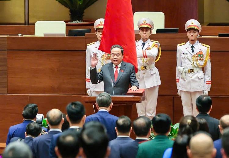 “Dưới cờ đỏ sao vàng thiêng liêng của Tổ quốc, trước Quốc hội, đồng bào cử tri cả nước, tôi – Chủ tịch Quốc hội nước Cộng hòa xã hội chủ nghĩa Việt Nam, xin tuyên thệ: Tuyệt đối trung thành với Tổ quốc, với nhân dân, với Hiến pháp nước Cộng hòa xã hội chủ nghĩa Việt Nam, nỗ lực, phấn đấu, hoàn thành tốt nhiệm vụ được Đảng, Nhà nước và nhân dân giao phó”, Chủ tịch Quốc hội Trần Thanh Mẫn tuyên thệ.