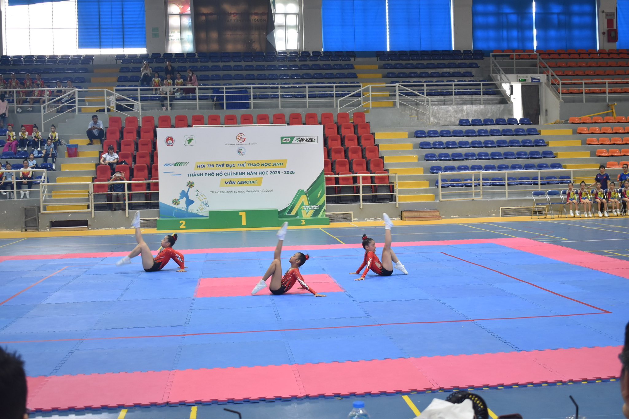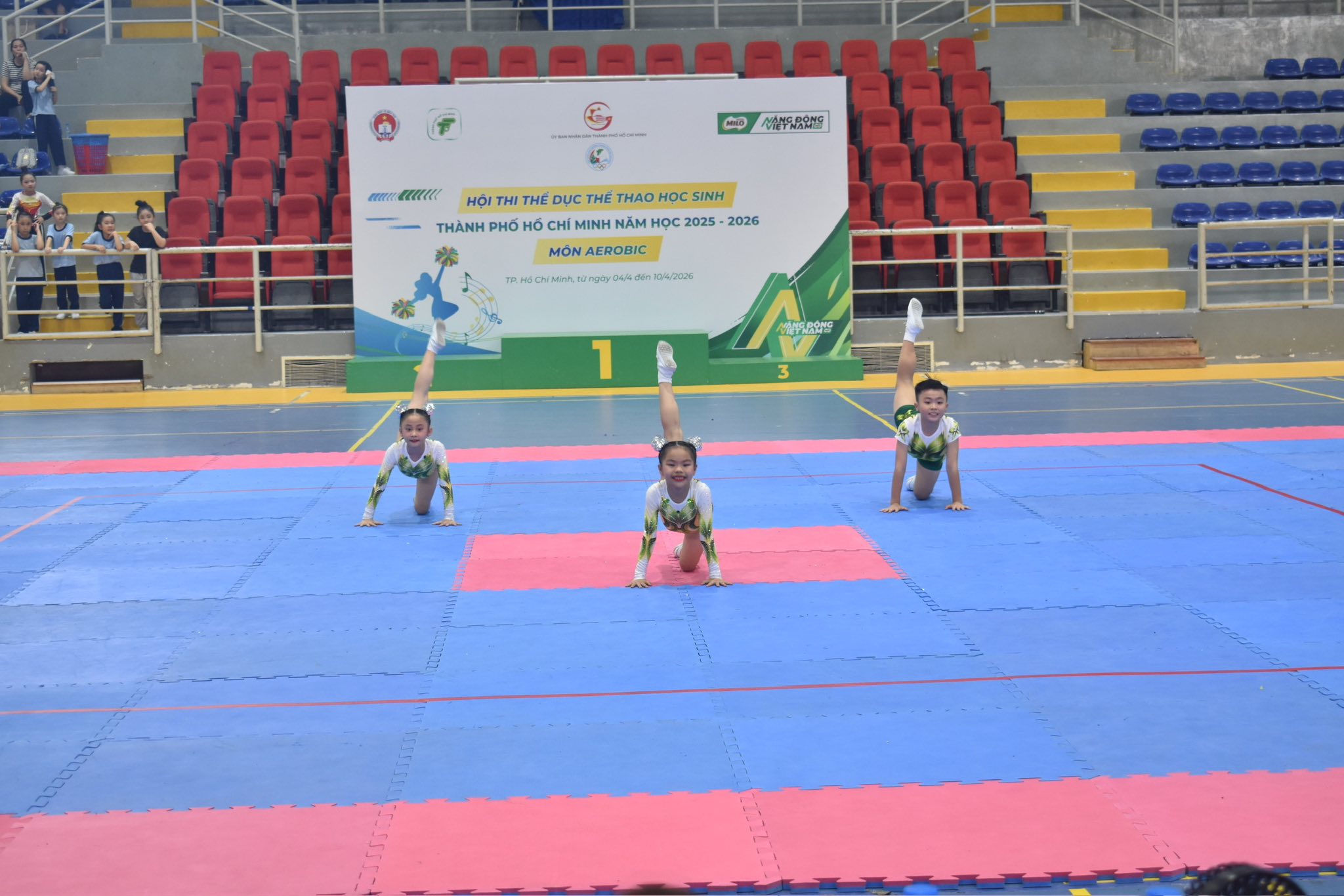 Môn Thể dục Aerobic là một trong 20 môn thể thao được tổ chức thi đấu trong Hội thi Thể dục Thể thao học sinh TP. Hồ Chí Minh năm học 2025-2026 được tổ chức tại Trung tâm Cung ứng Dịch vụ công phường An Hội Đông từ ngày 09/4 đến 10/4/2026.